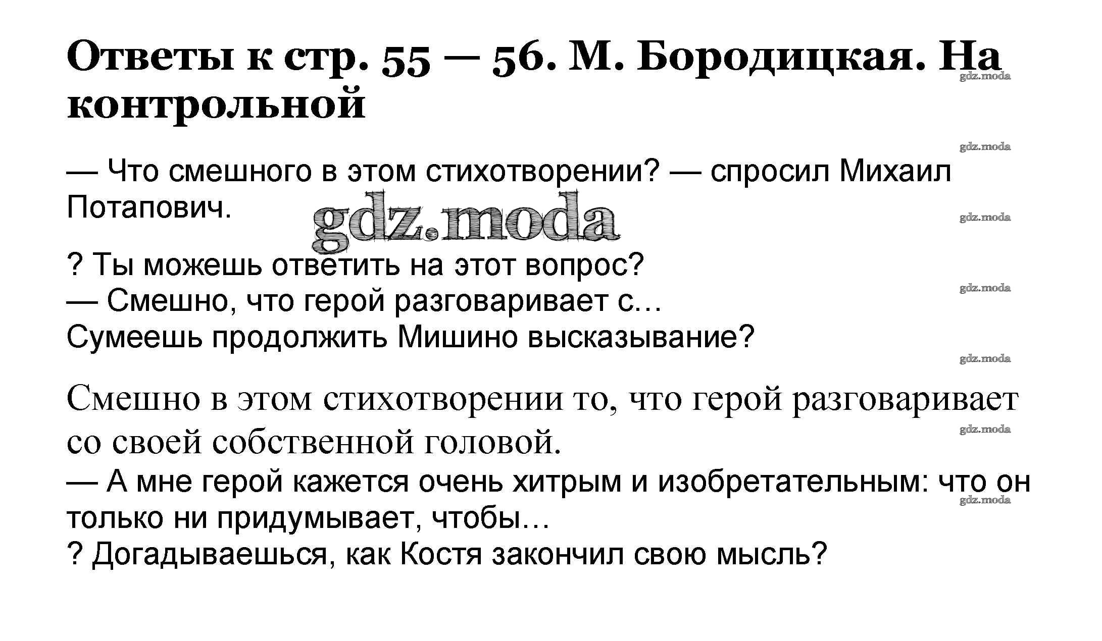 ГДЗ решение к заданию № 55-56 Литературное чтение 3 класс Чуракова Н.А. Академкнига 2017 Часть 1, Часть 2 ФГОС бесплатно на гдз.мода!