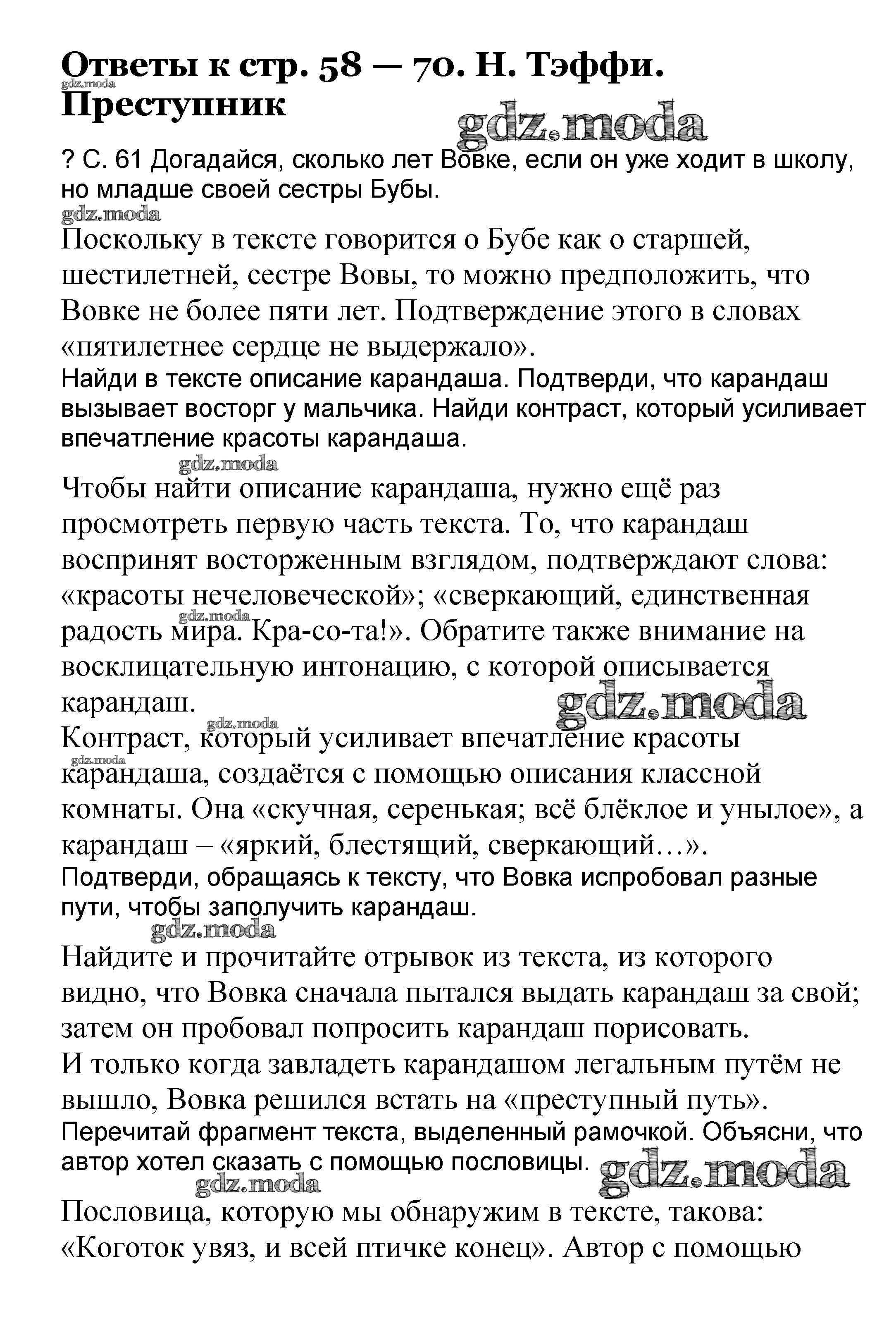ОТВЕТ на задание № 58-70 Учебник по Литературе 3 класс Чуракова Перспективная начальная школа