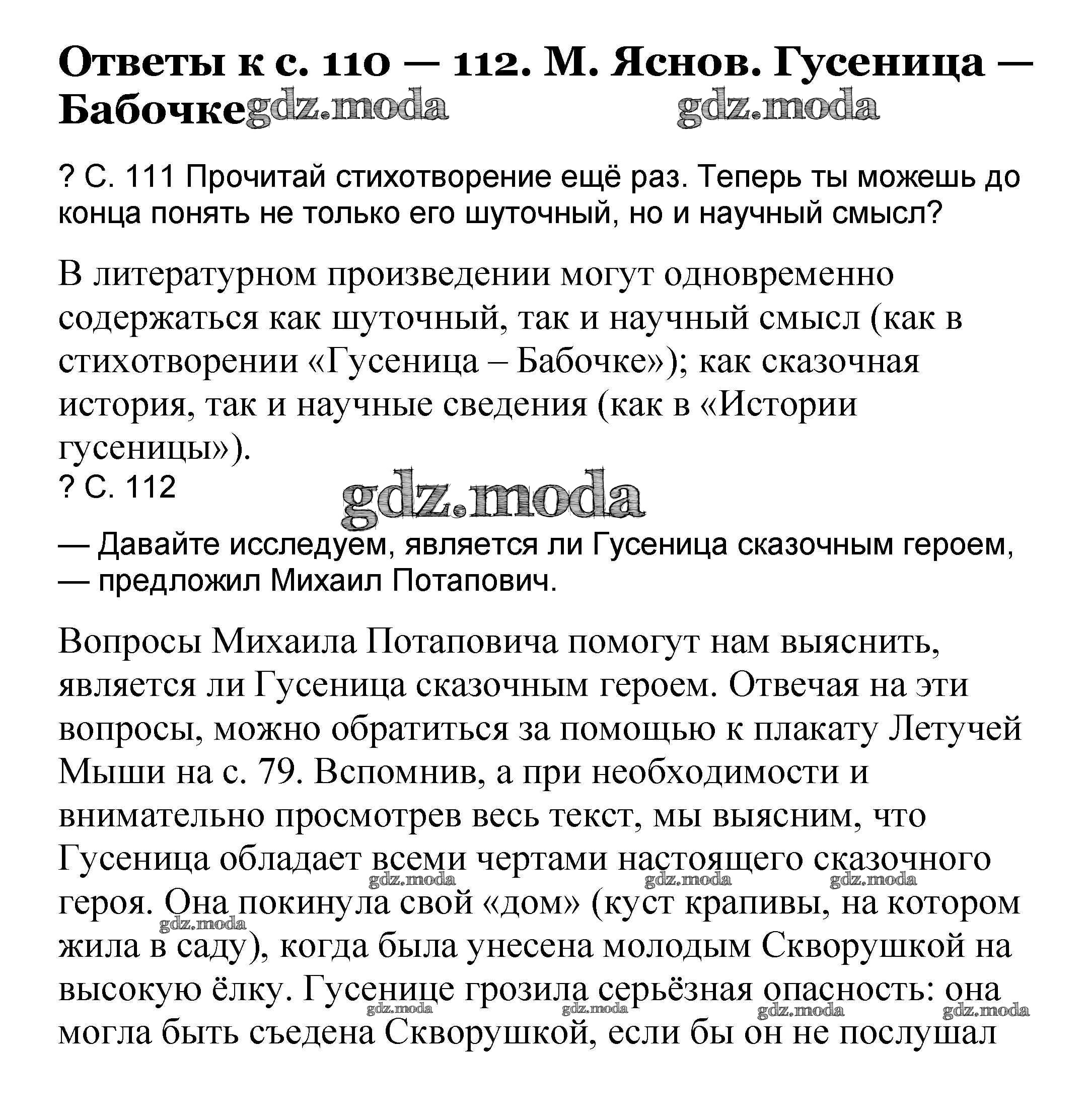 ОТВЕТ на задание № 110-112 Учебник по Литературе 3 класс Чуракова Перспективная начальная школа
