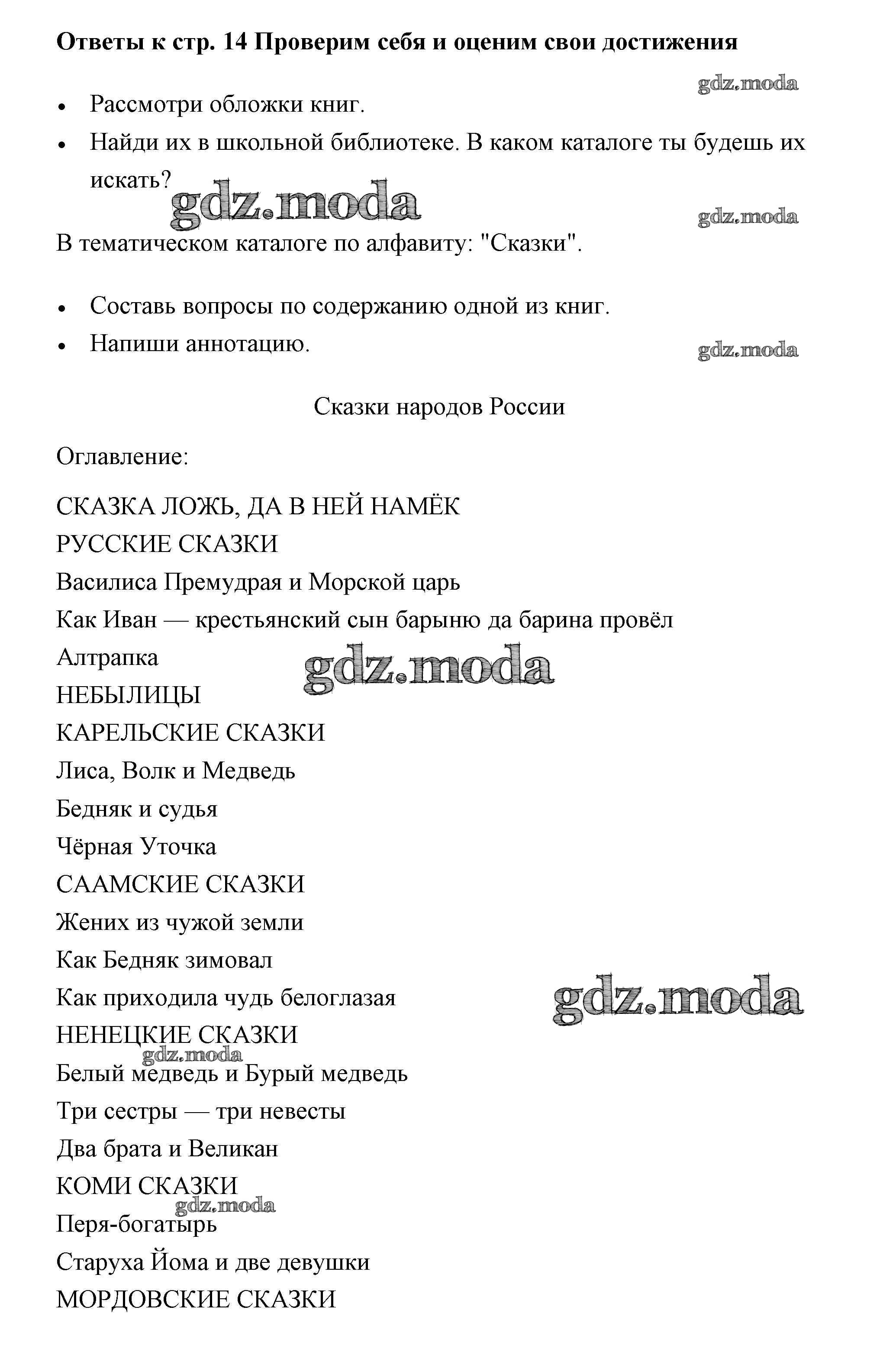 ГДЗ решение к заданию № 14 Литературное чтение 3 класс рабочая тетрадь Виноградская Просвещение 2018 ФГОС бесплатно на гдз.мода!