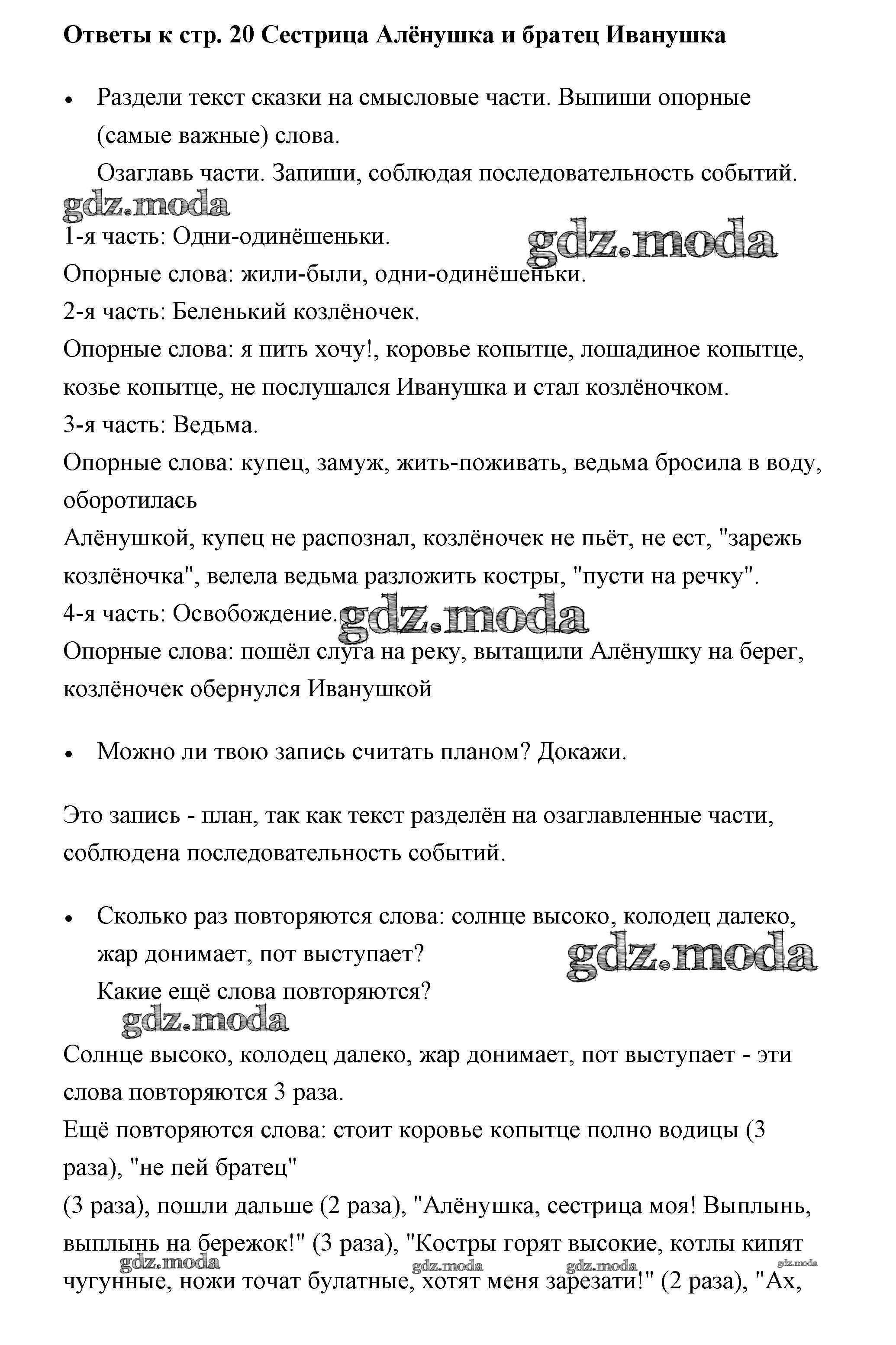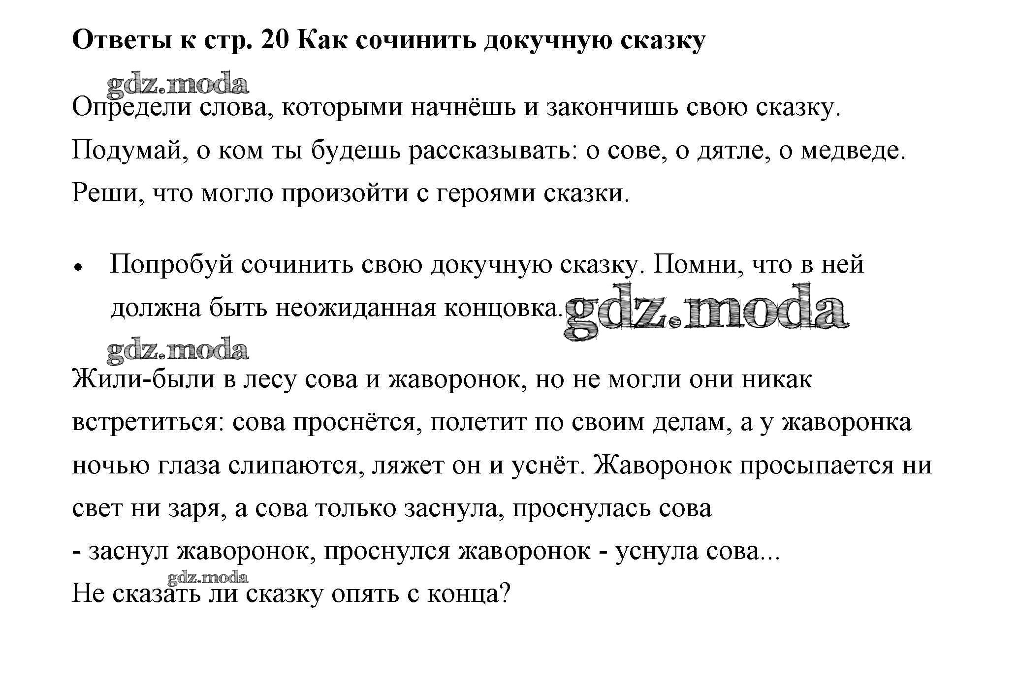 ГДЗ решение к заданию № 20 Литературное чтение 3 класс рабочая тетрадь Виноградская Просвещение 2018 ФГОС бесплатно на гдз.мода!
