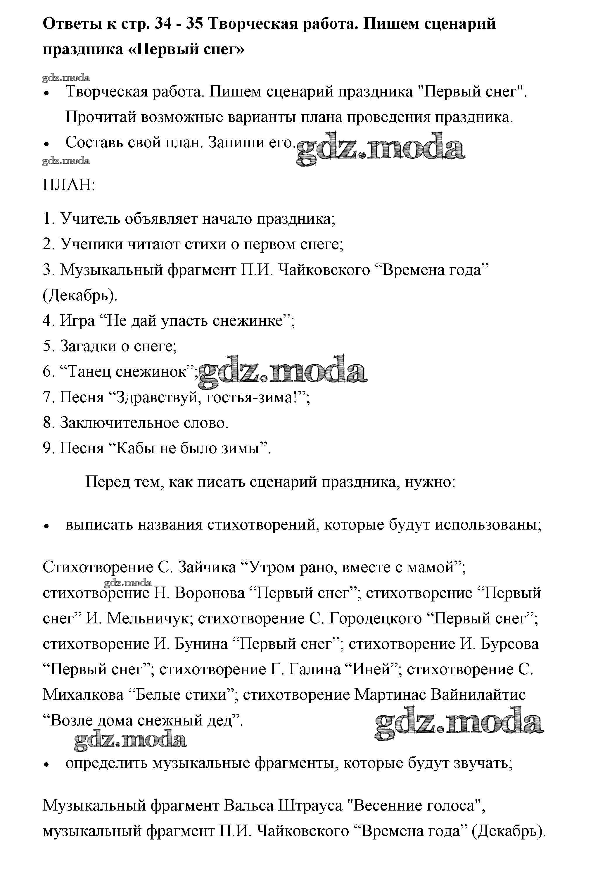 ГДЗ решение к заданию № 34-35 Литературное чтение 3 класс рабочая тетрадь Виноградская Просвещение 2018 ФГОС бесплатно на гдз.мода!