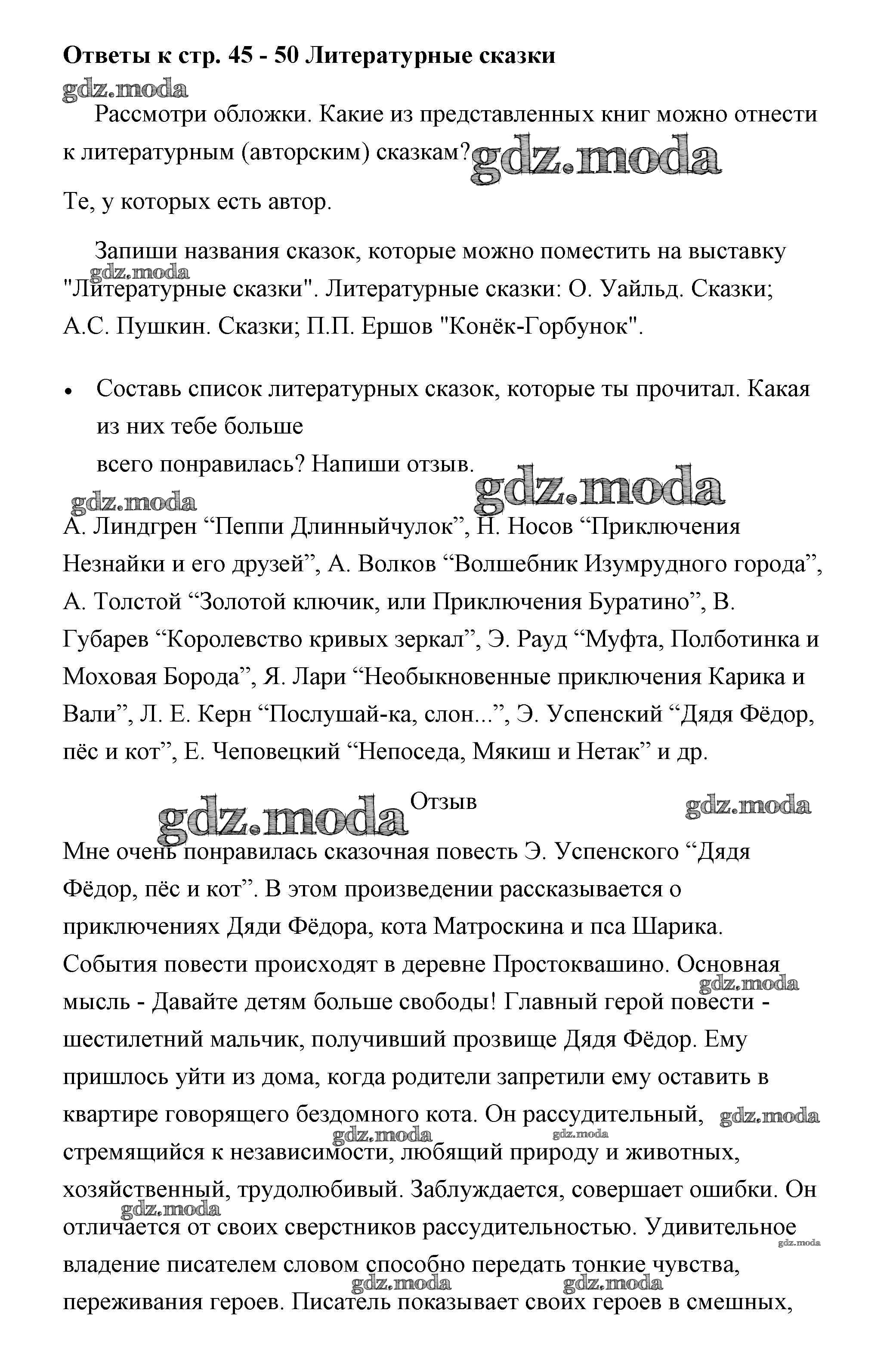 ОТВЕТ на задание № 45-50 Рабочая тетрадь по Литературе 3 класс Бойкина Школа России