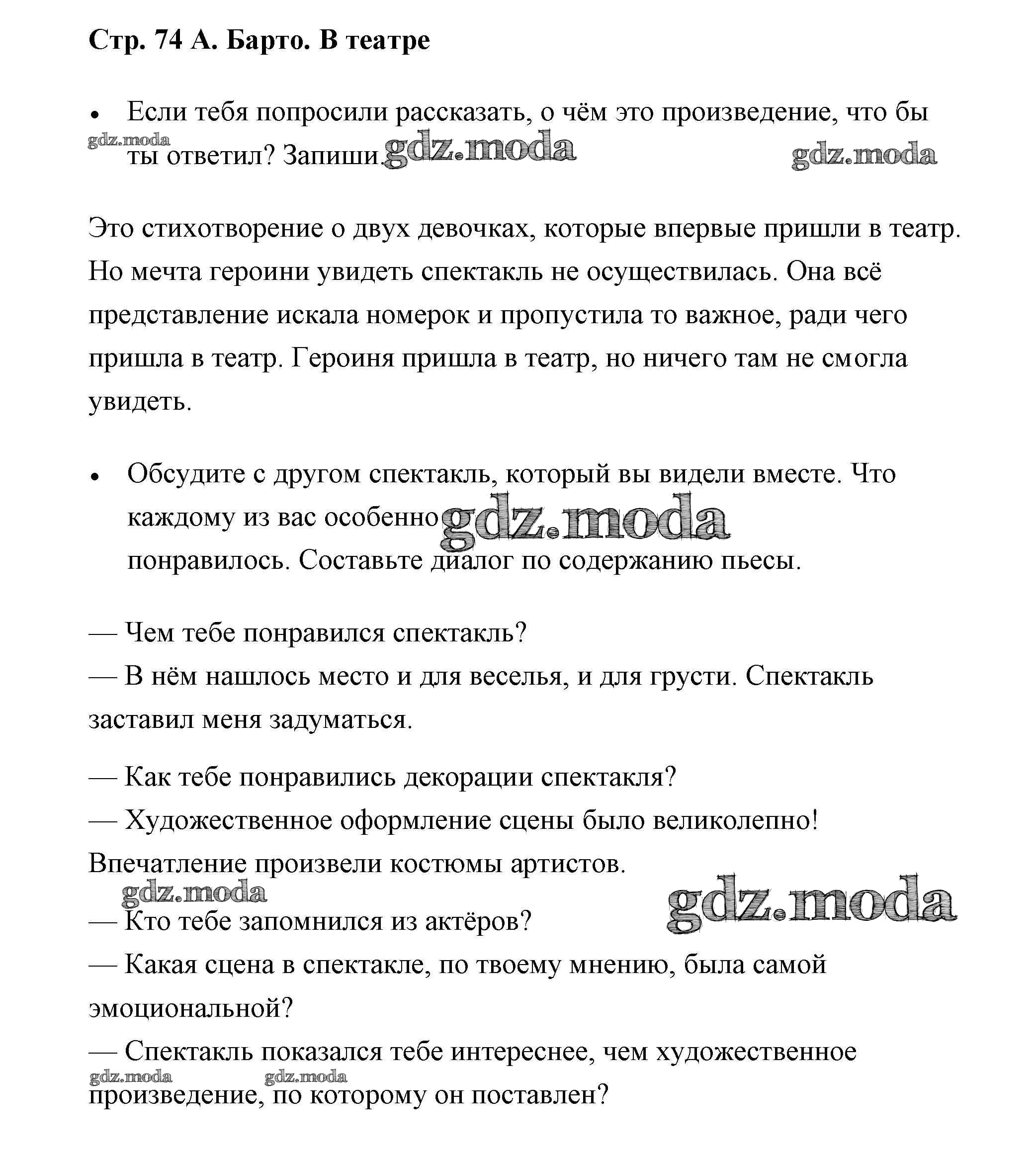 ГДЗ решение к заданию № 74 Литературное чтение 3 класс рабочая тетрадь Виноградская Просвещение 2018 ФГОС бесплатно на гдз.мода!