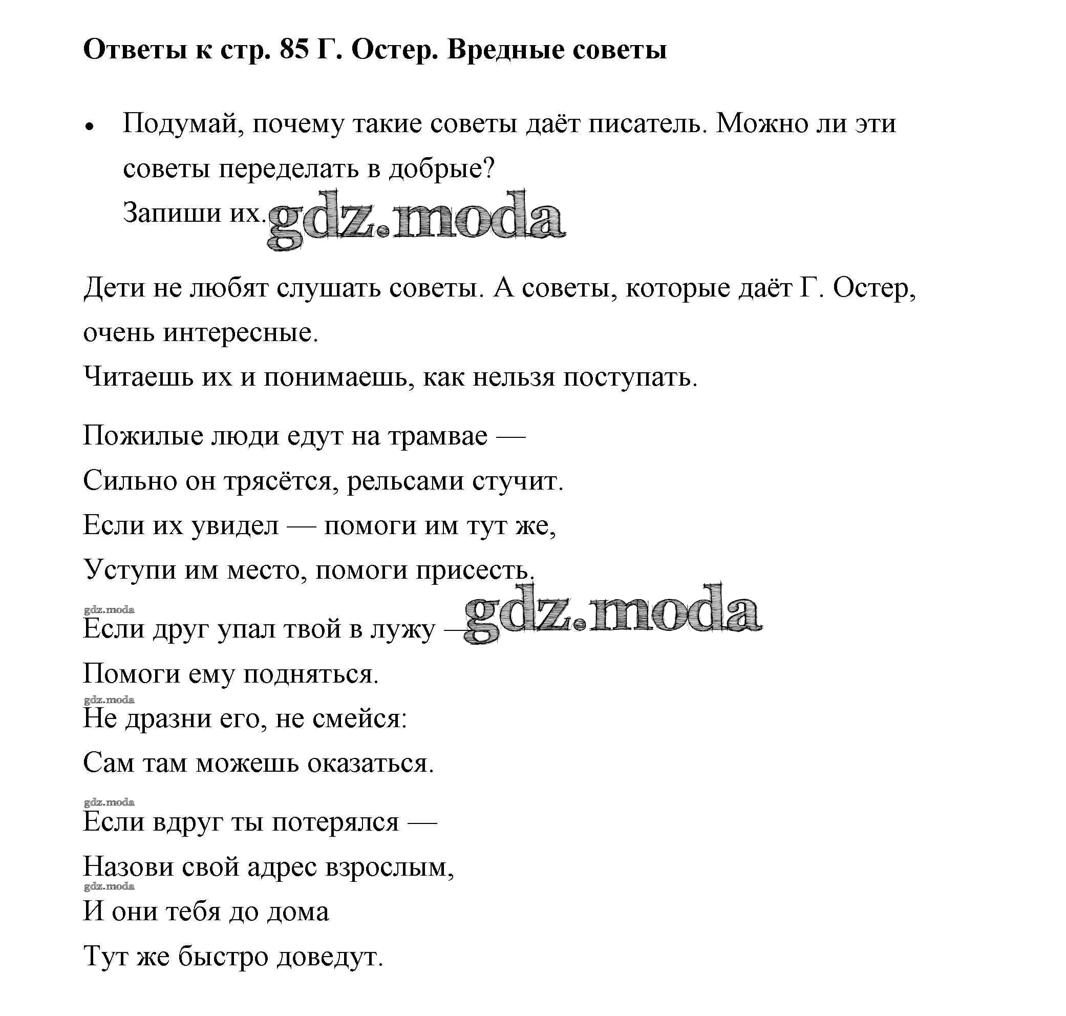 ГДЗ решение к заданию № 85 Литературное чтение 3 класс рабочая тетрадь Виноградская Просвещение 2018 ФГОС бесплатно на гдз.мода!