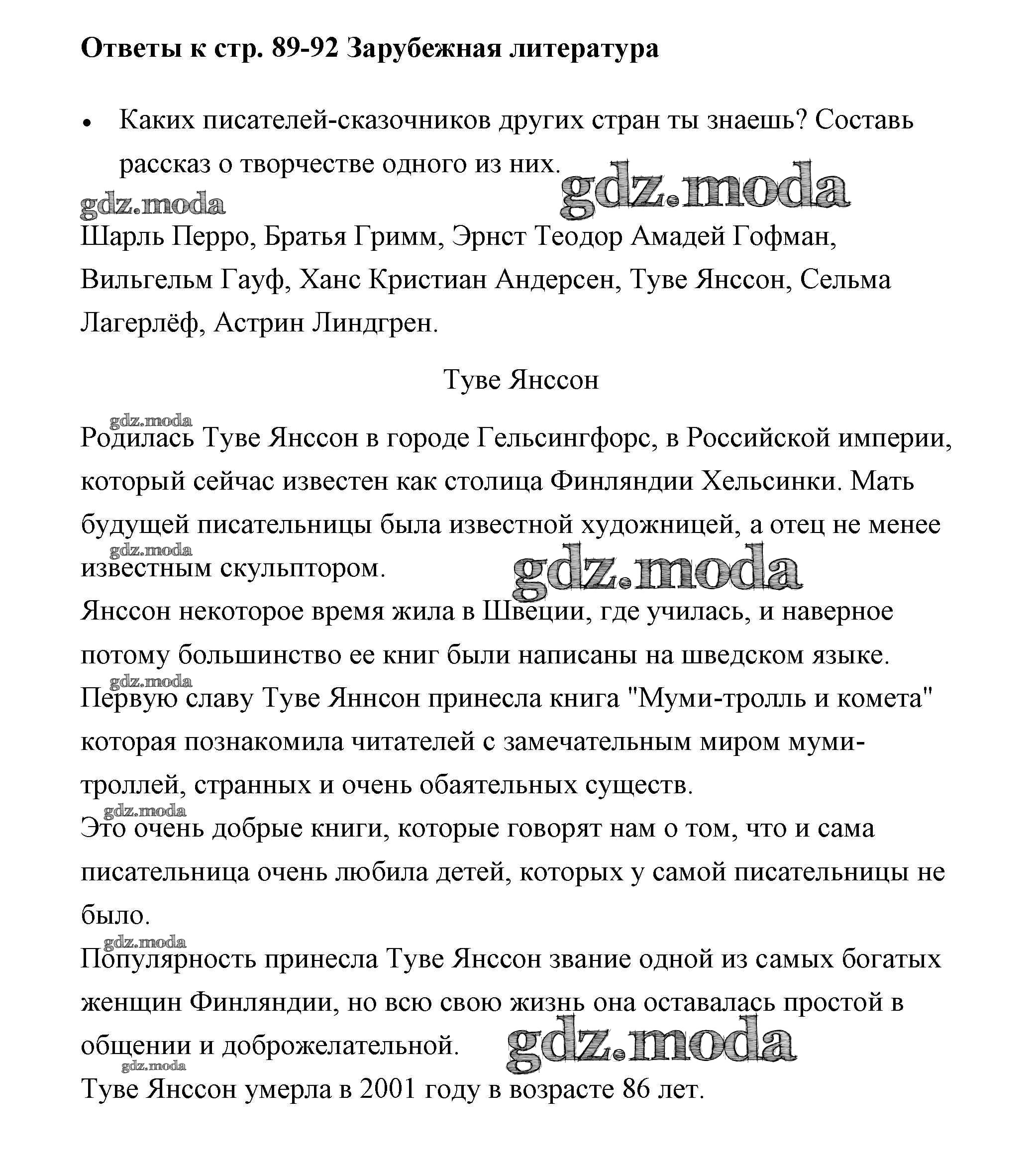 ОТВЕТ на задание № 89-92 Рабочая тетрадь по Литературе 3 класс Бойкина Школа России