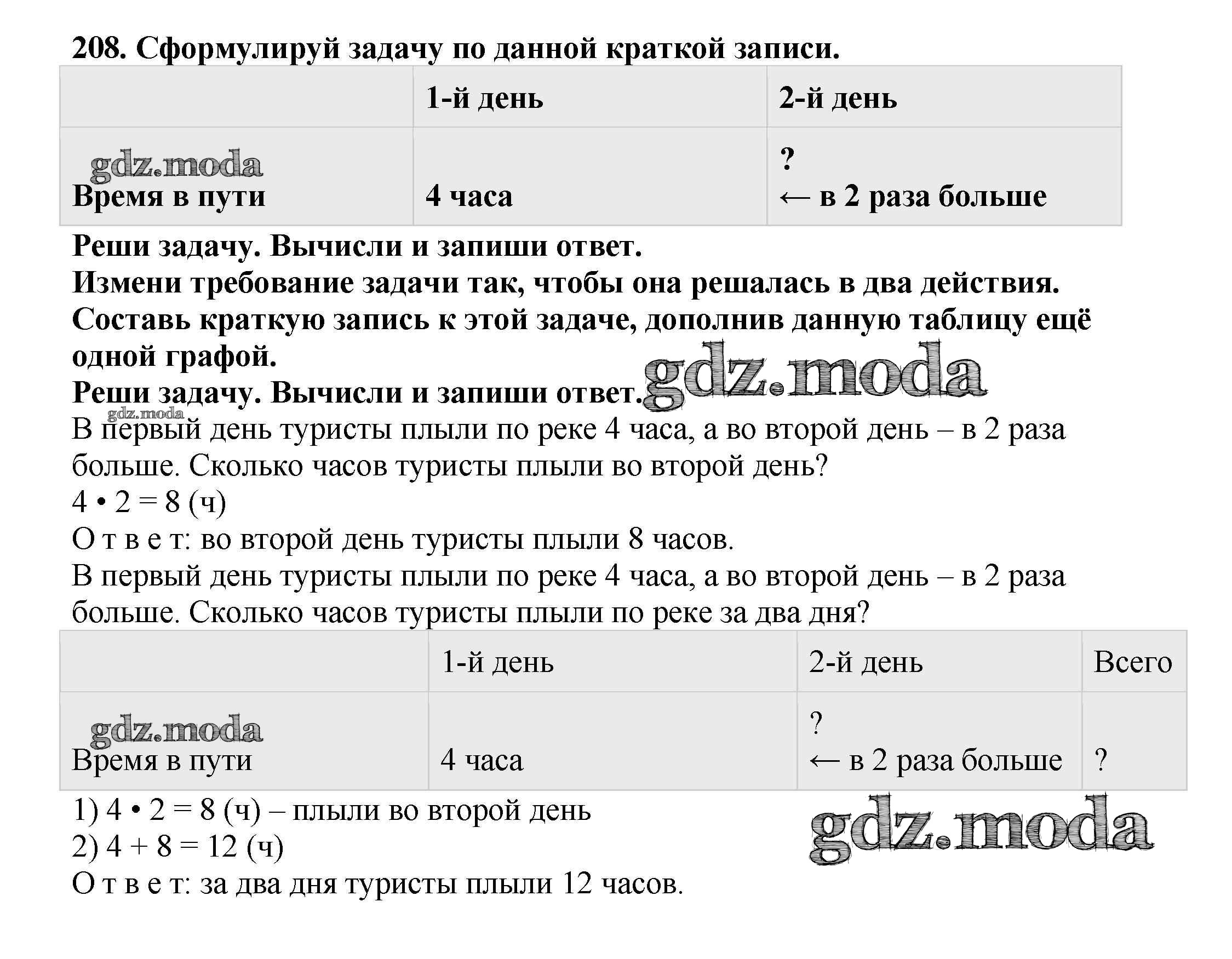 ГДЗ решение к заданию № 208 Математика 3 класс Чекин А.Л. Академкнига 2016 Часть 1, Часть 2 ФГОС бесплатно на гдз.мода!