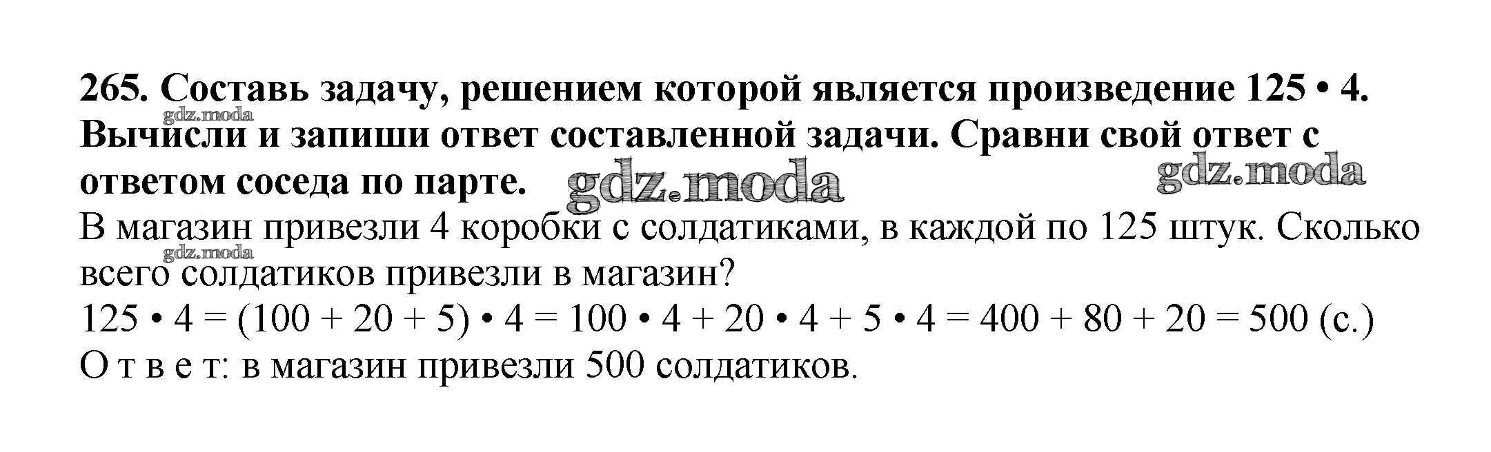 ОТВЕТ на задание № 265 Учебник по Математике 3 класс Чекин Перспективная начальная школа