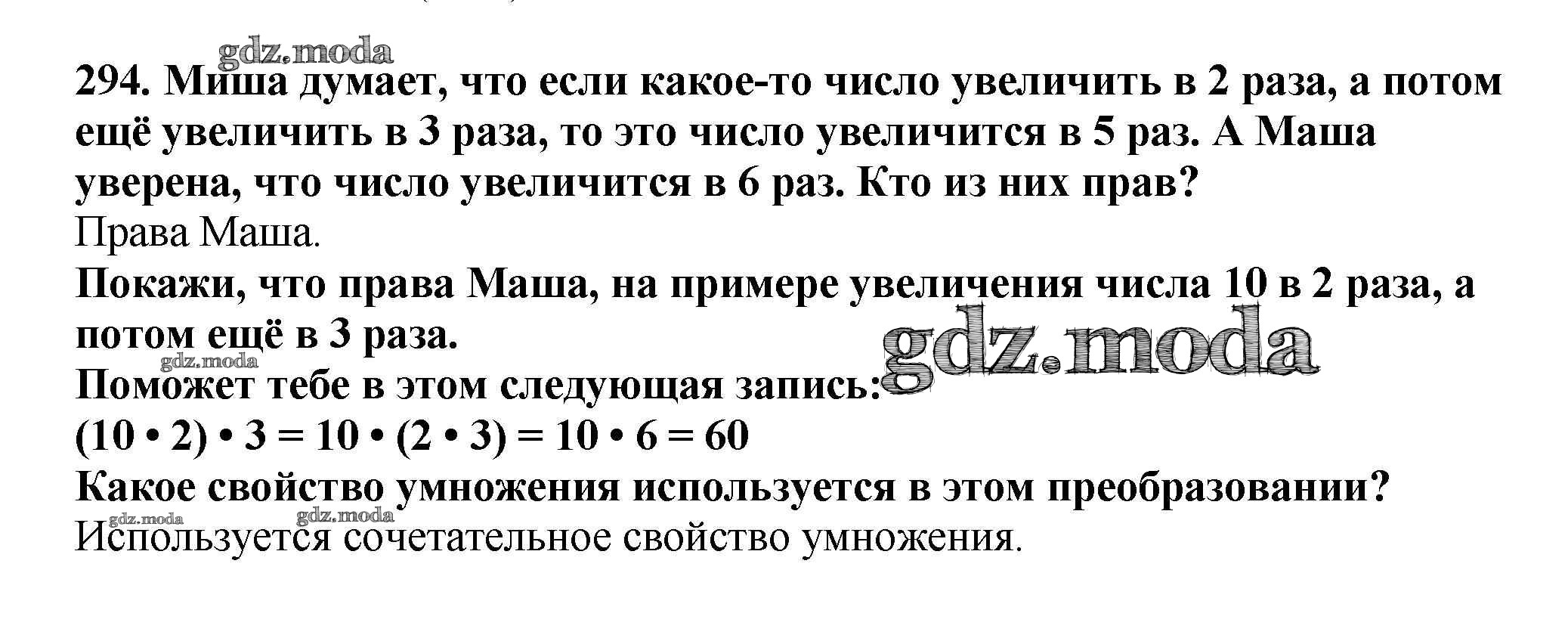 ОТВЕТ на задание № 294 Учебник по Математике 3 класс Чекин Перспективная начальная школа