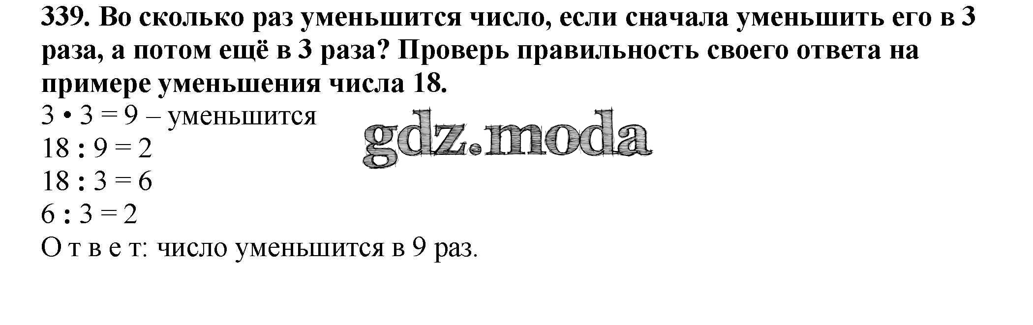 ОТВЕТ на задание № 339 Учебник по Математике 3 класс Чекин Перспективная начальная школа