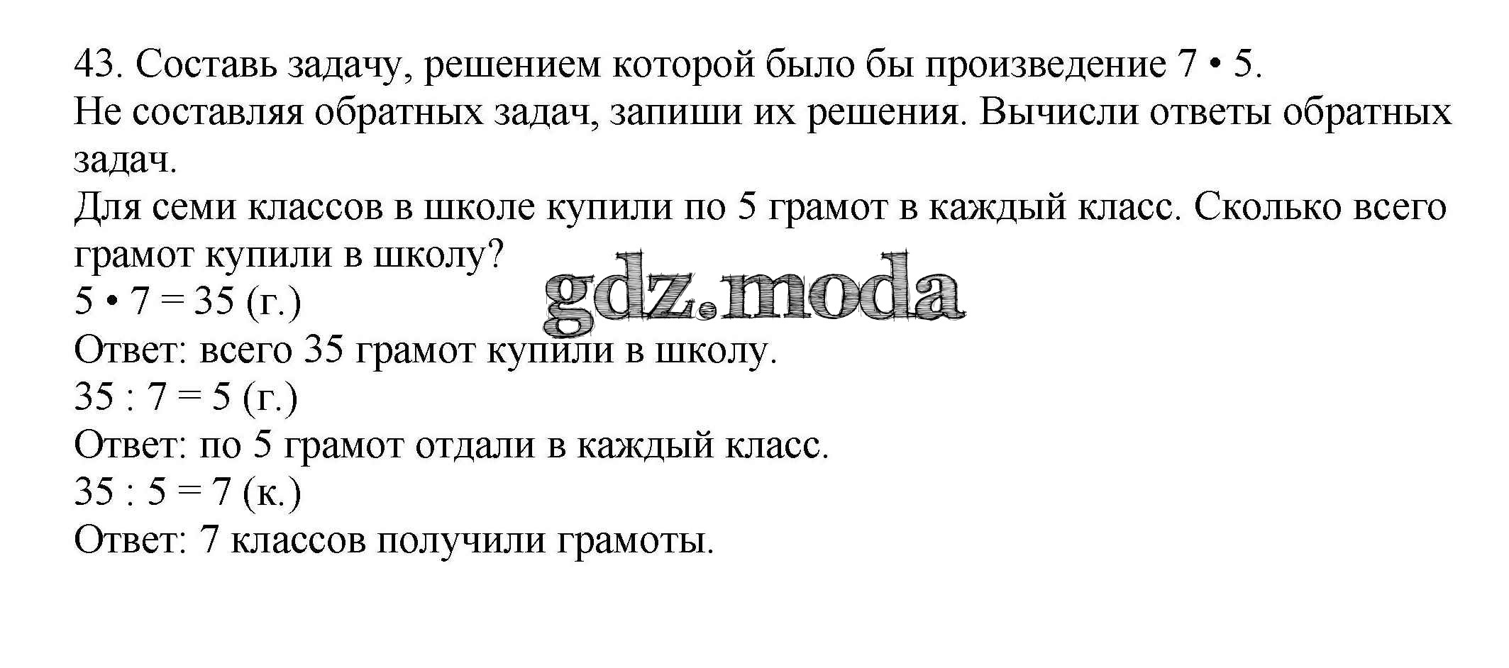 ГДЗ решение к заданию № 43 Математика 3 класс Чекин А.Л. Академкнига 2016 Часть 1, Часть 2 ФГОС бесплатно на гдз.мода!