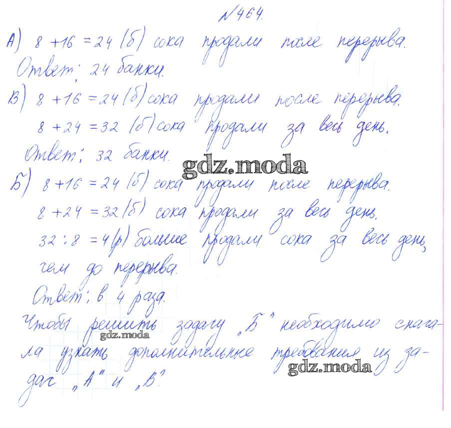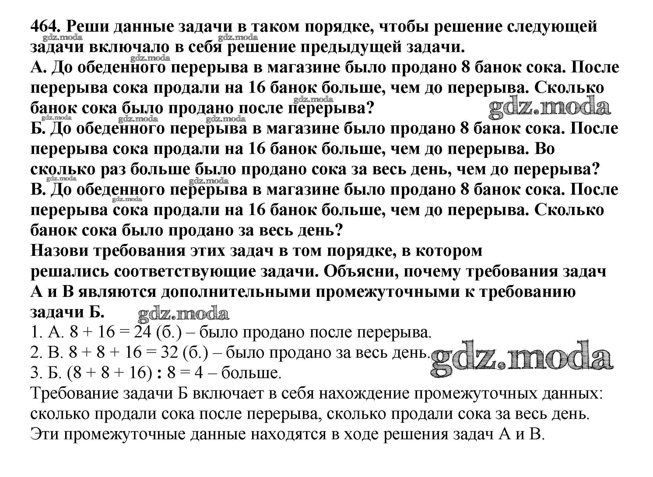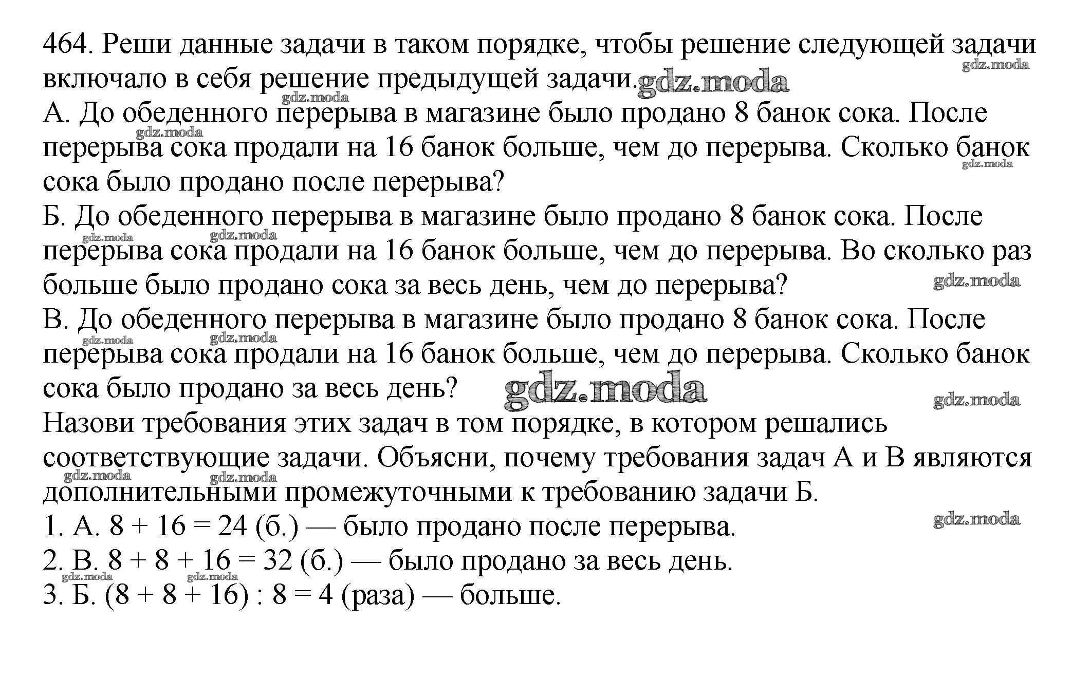ОТВЕТ на задание № 464 Учебник по Математике 3 класс Чекин Перспективная начальная школа
