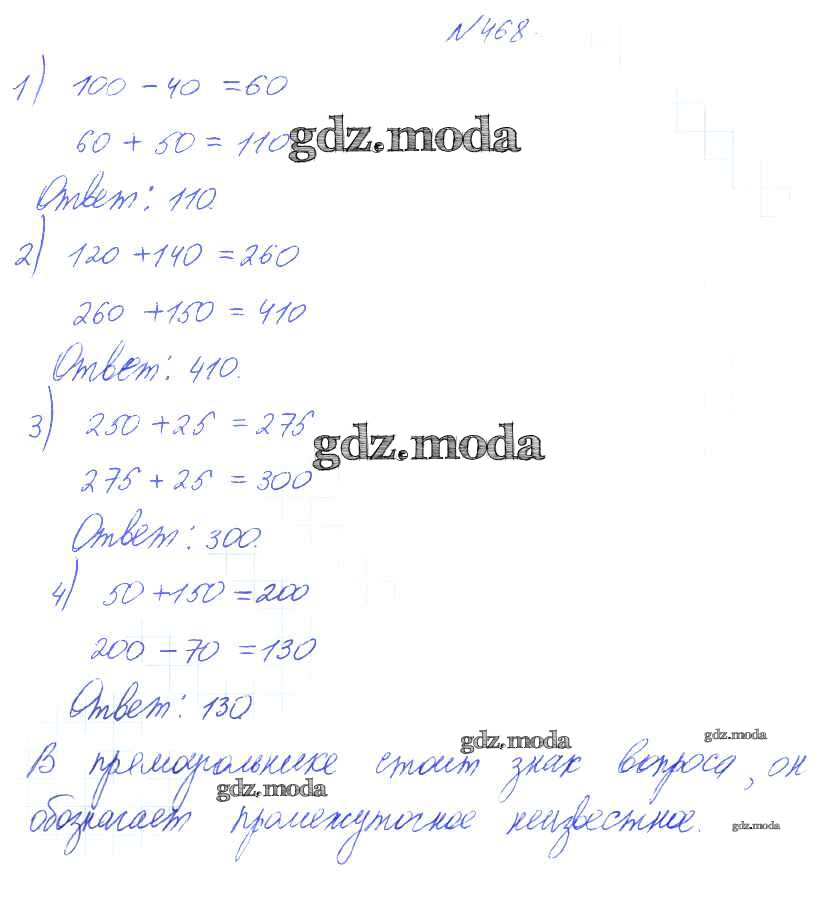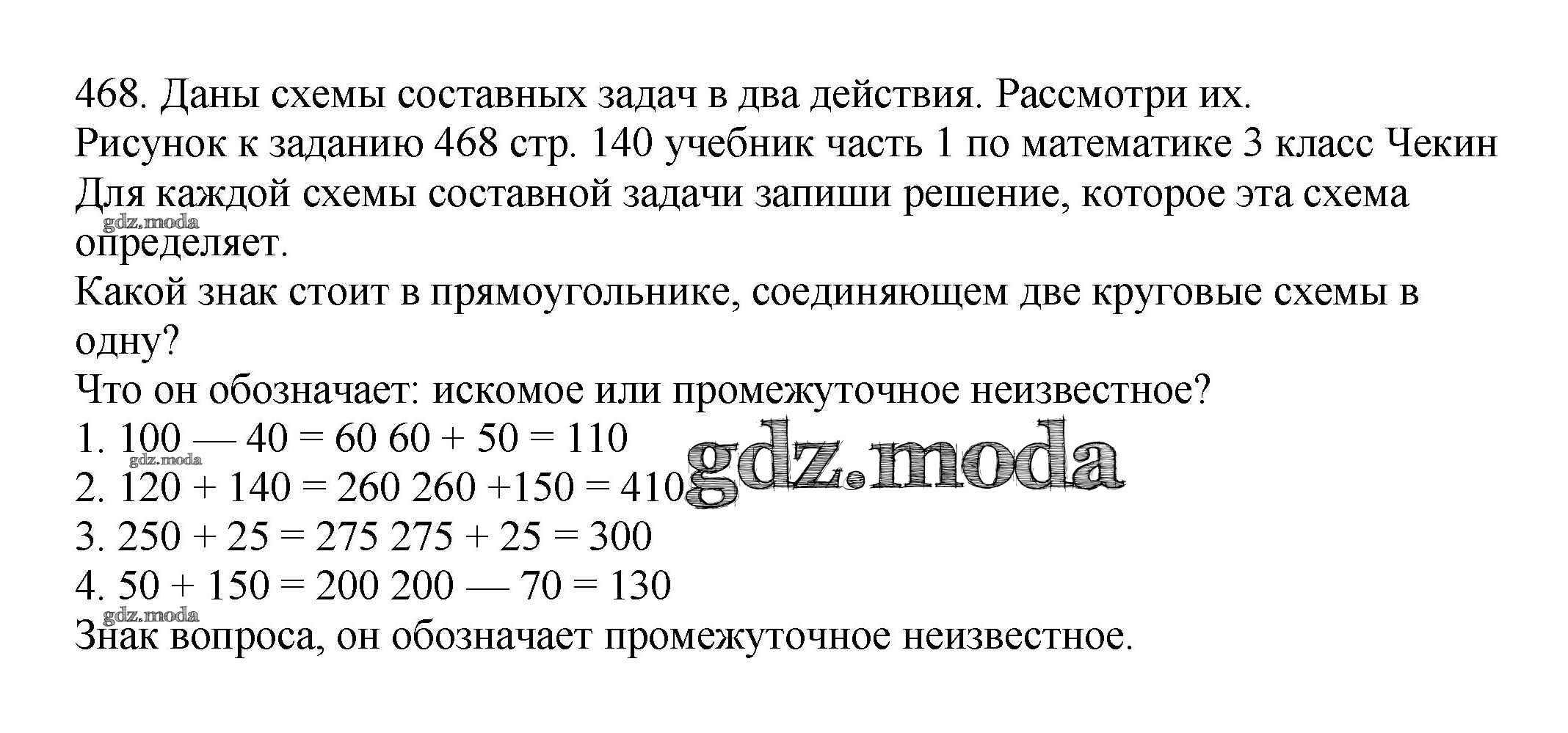 ОТВЕТ на задание № 468 Учебник по Математике 3 класс Чекин Перспективная начальная школа