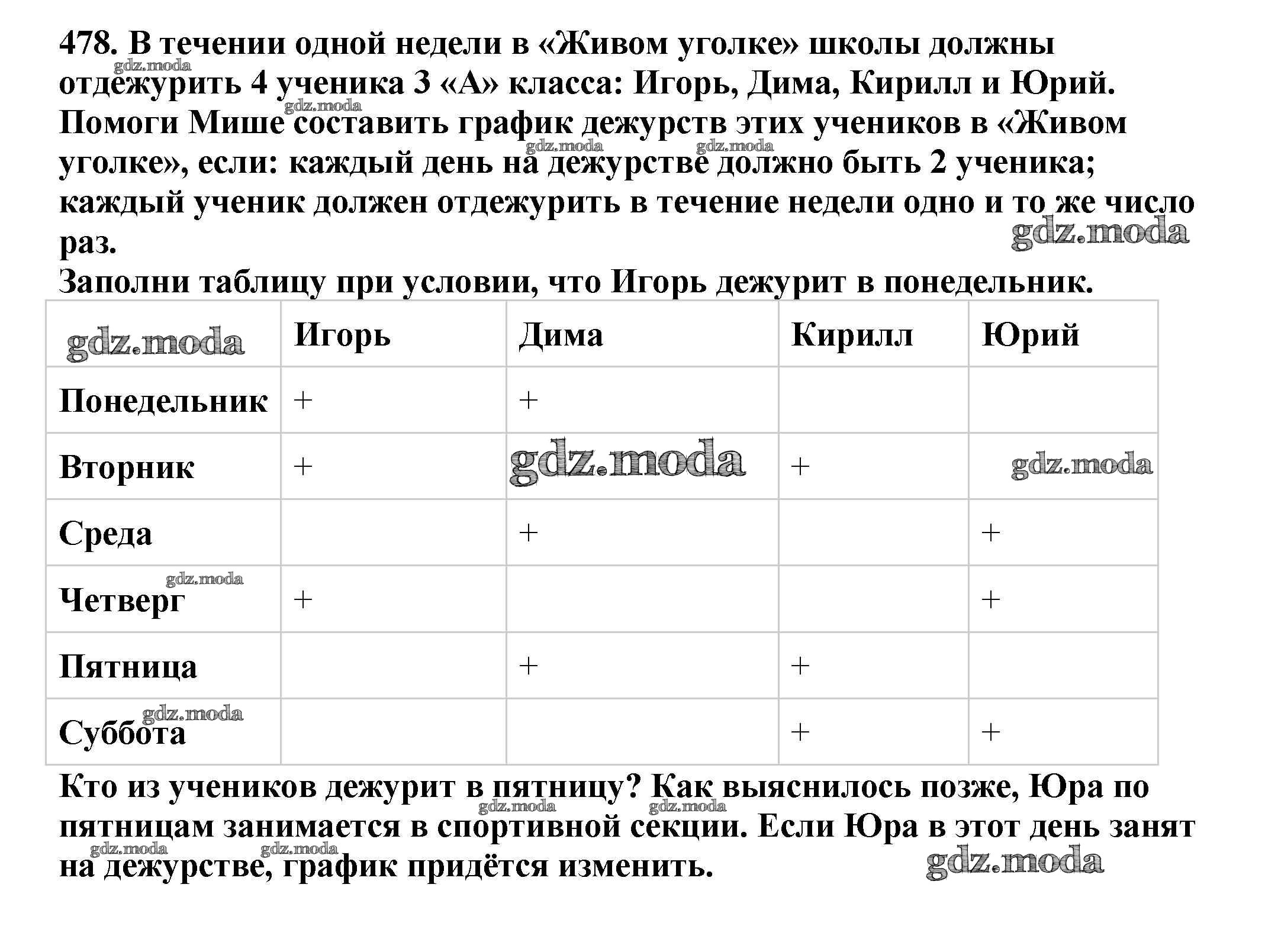 ОТВЕТ на задание № 478 Учебник по Математике 3 класс Чекин Перспективная начальная школа
