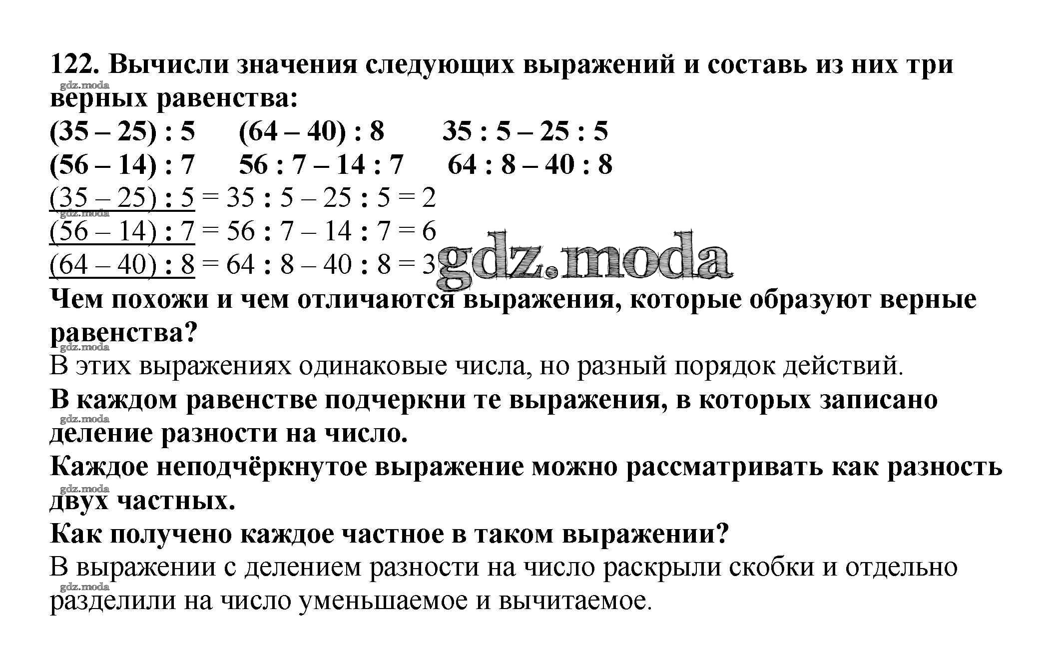 ОТВЕТ на задание № 122 Учебник по Математике 3 класс Чекин Перспективная начальная школа