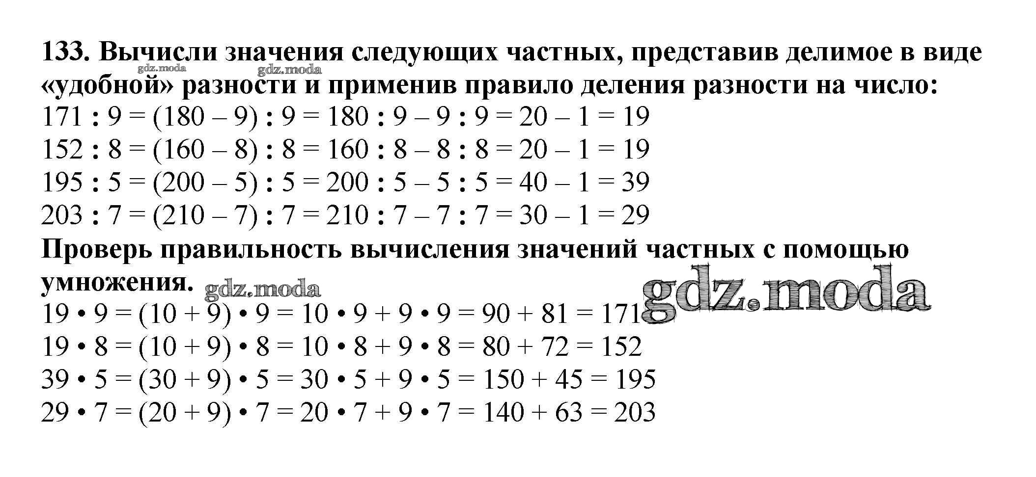 ОТВЕТ на задание № 133 Учебник по Математике 3 класс Чекин Перспективная начальная школа