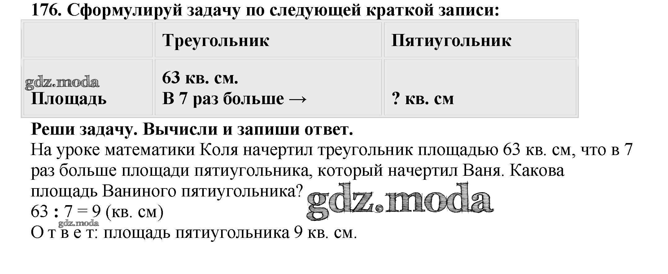 ГДЗ решение к заданию № 176 Математика 3 класс Чекин А.Л. Академкнига 2016 Часть 1, Часть 2 ФГОС бесплатно на гдз.мода!