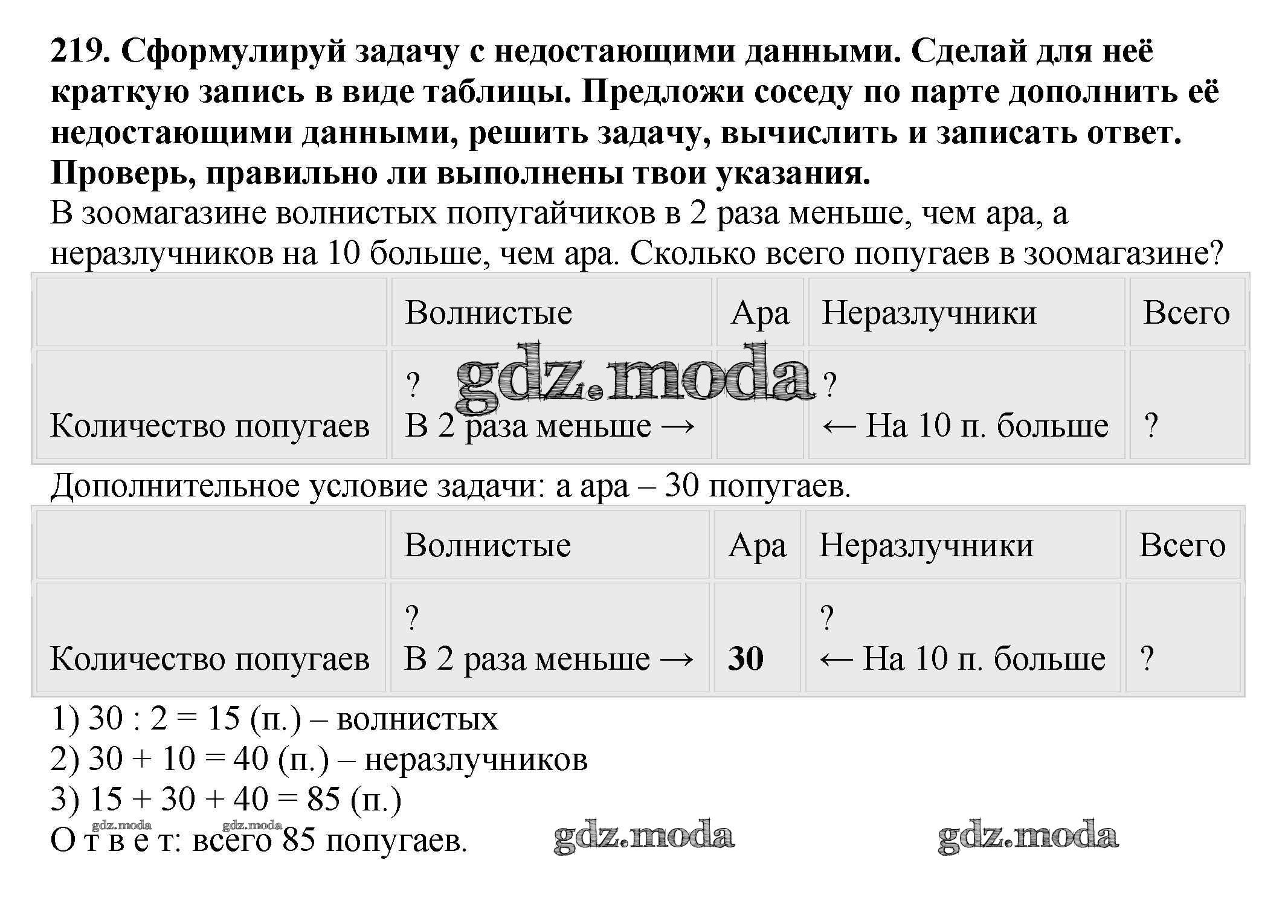ОТВЕТ на задание № 219 Учебник по Математике 3 класс Чекин Перспективная начальная школа