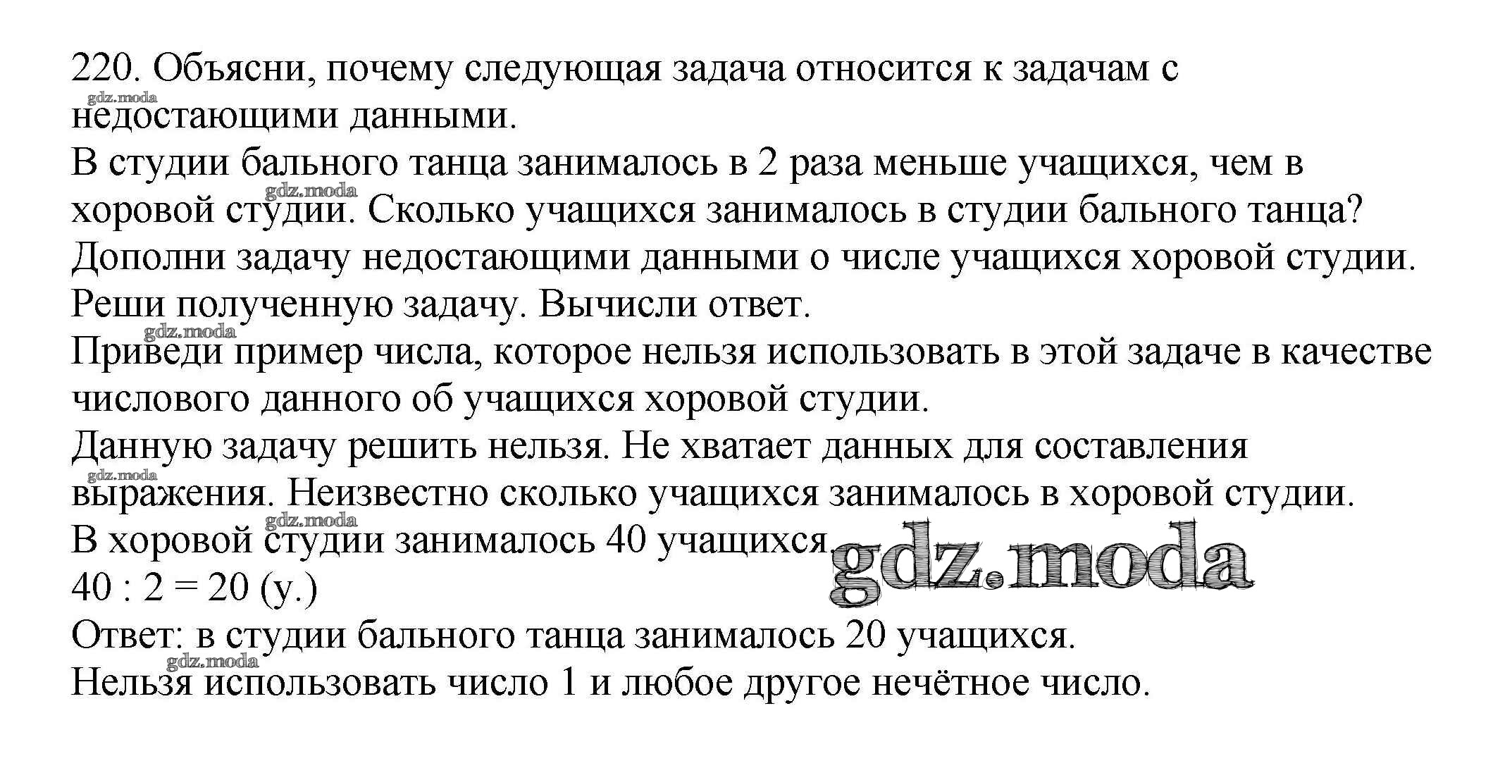 ОТВЕТ на задание № 220 Учебник по Математике 3 класс Чекин Перспективная начальная школа