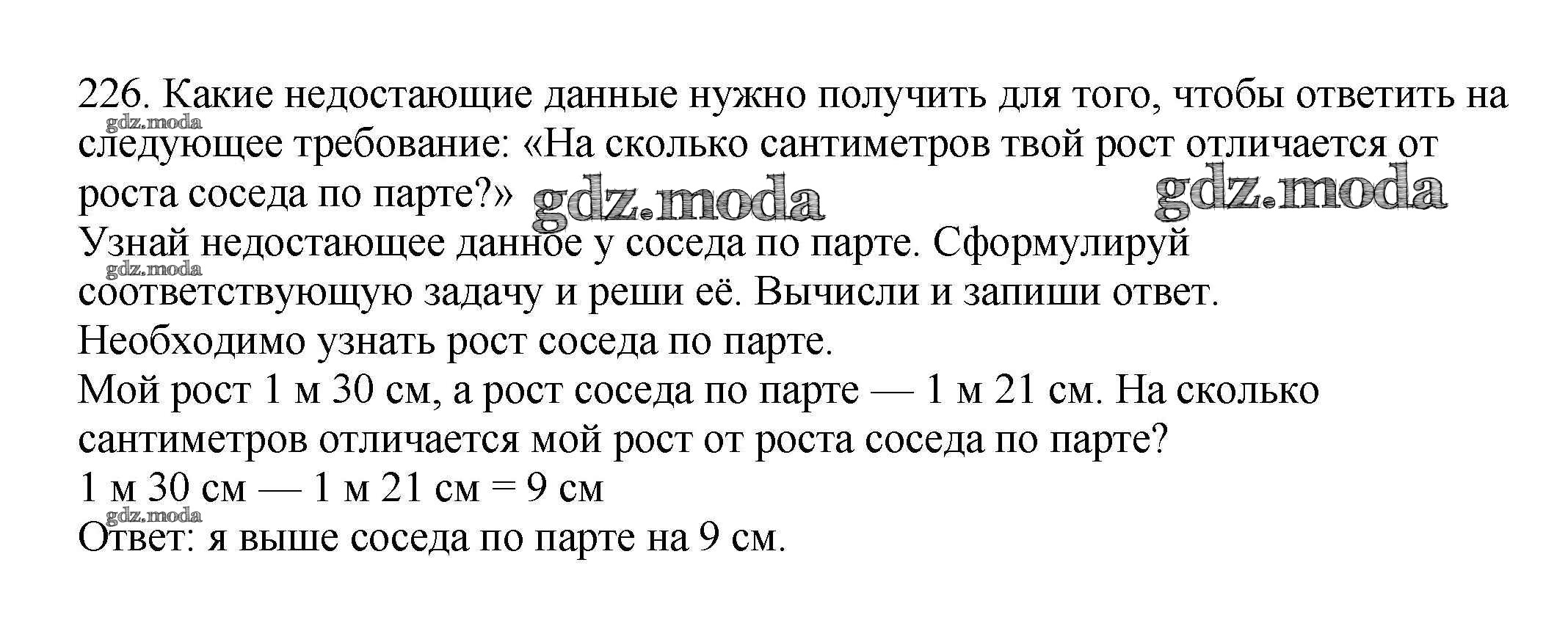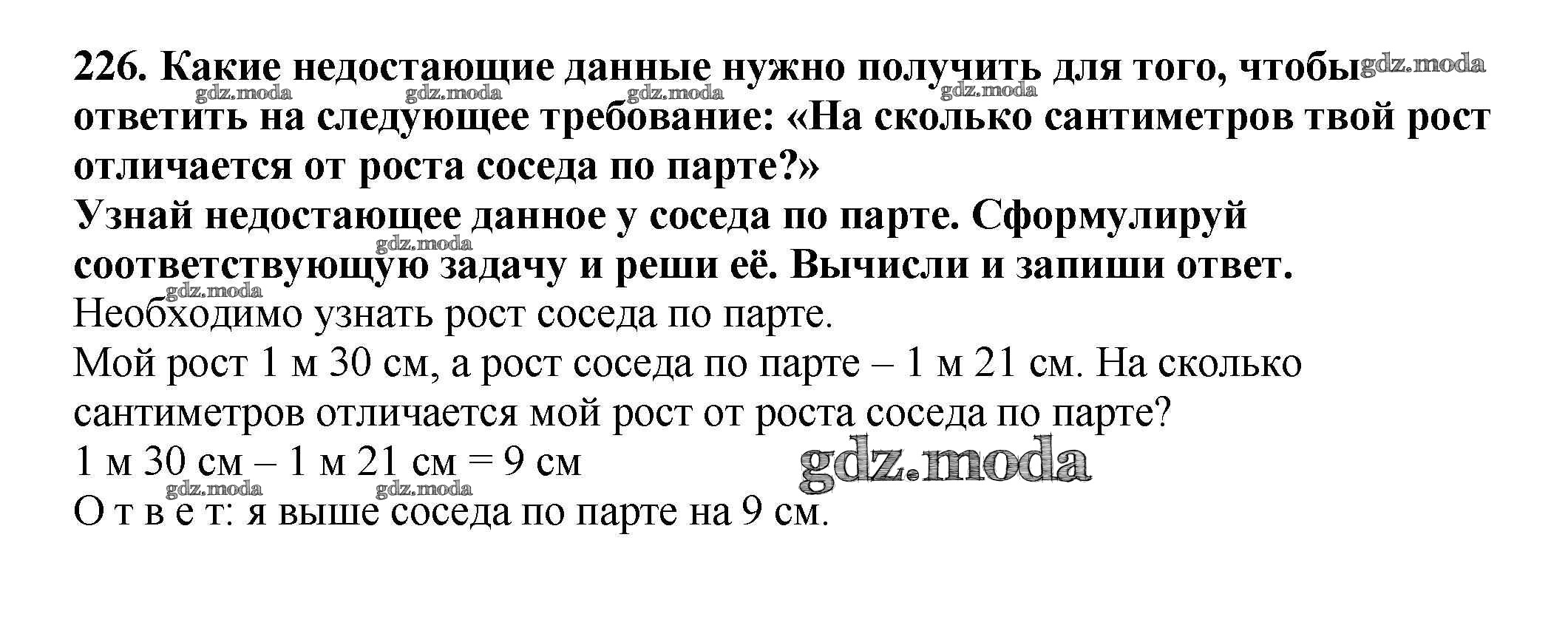 ГДЗ решение к заданию № 226 Математика 3 класс Чекин А.Л. Академкнига 2016 Часть 1, Часть 2 ФГОС бесплатно на гдз.мода!