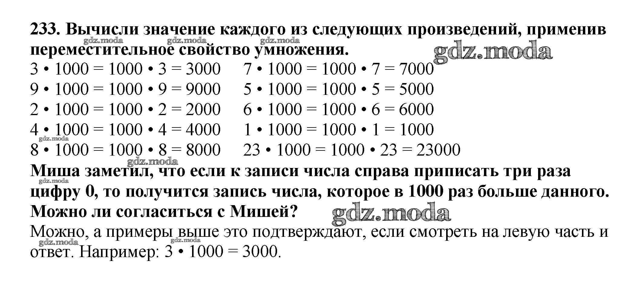 ОТВЕТ на задание № 233 Учебник по Математике 3 класс Чекин Перспективная начальная школа