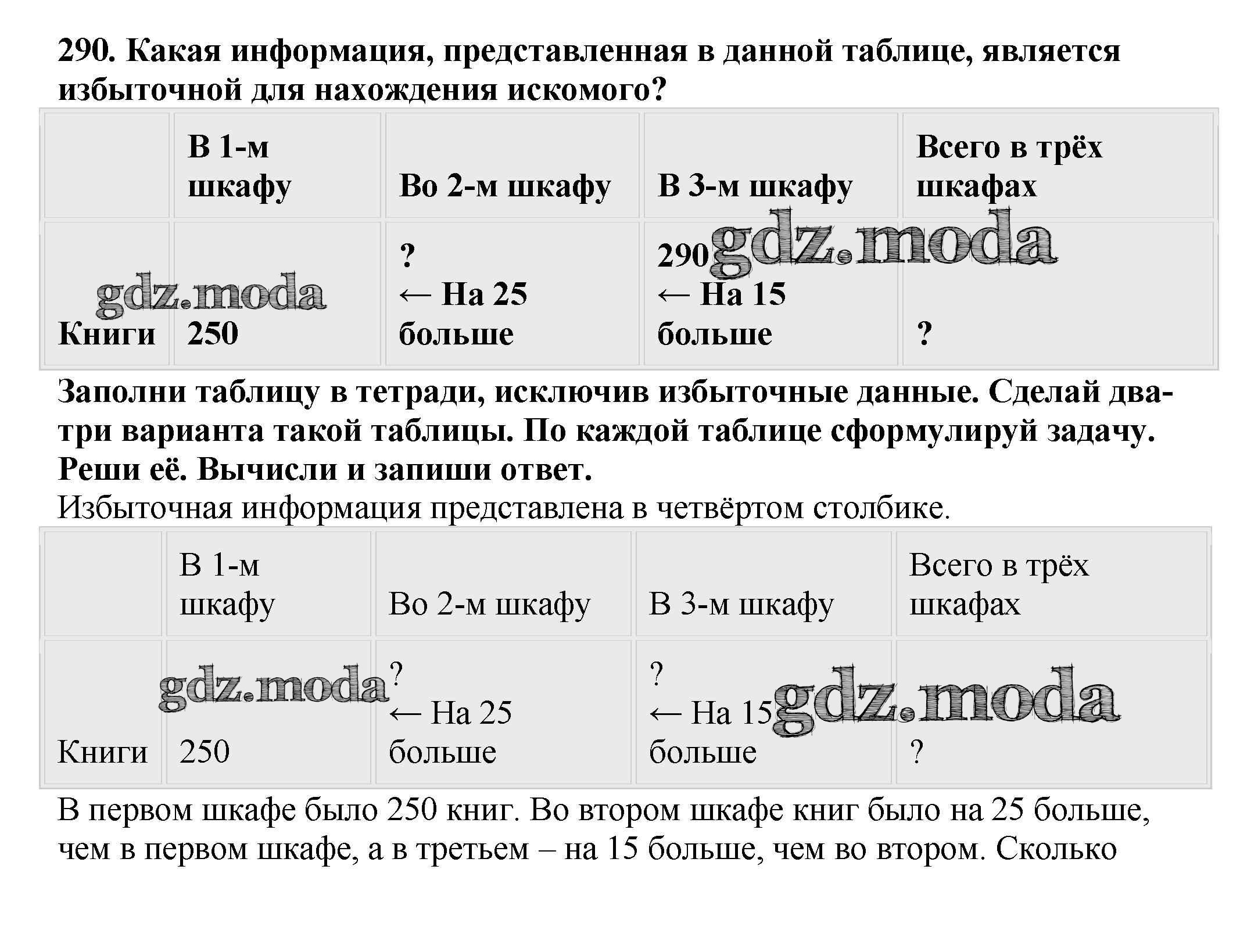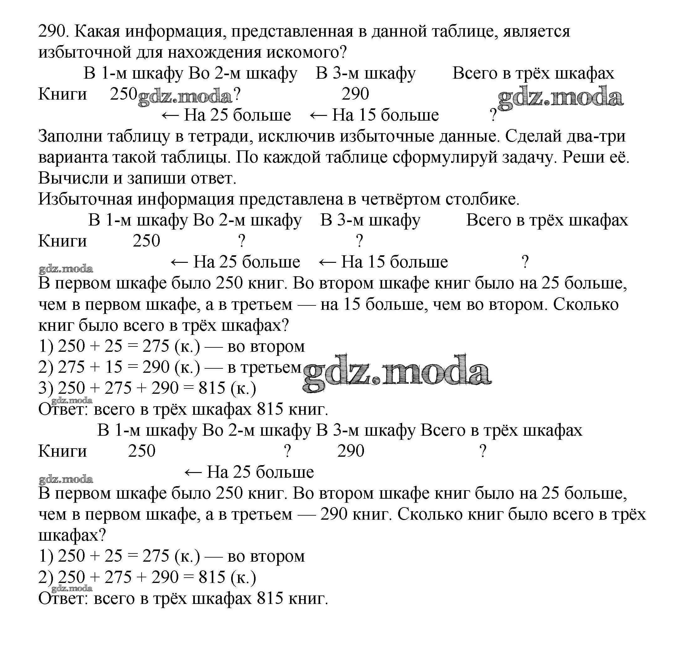 ОТВЕТ на задание № 290 Учебник по Математике 3 класс Чекин Перспективная начальная школа