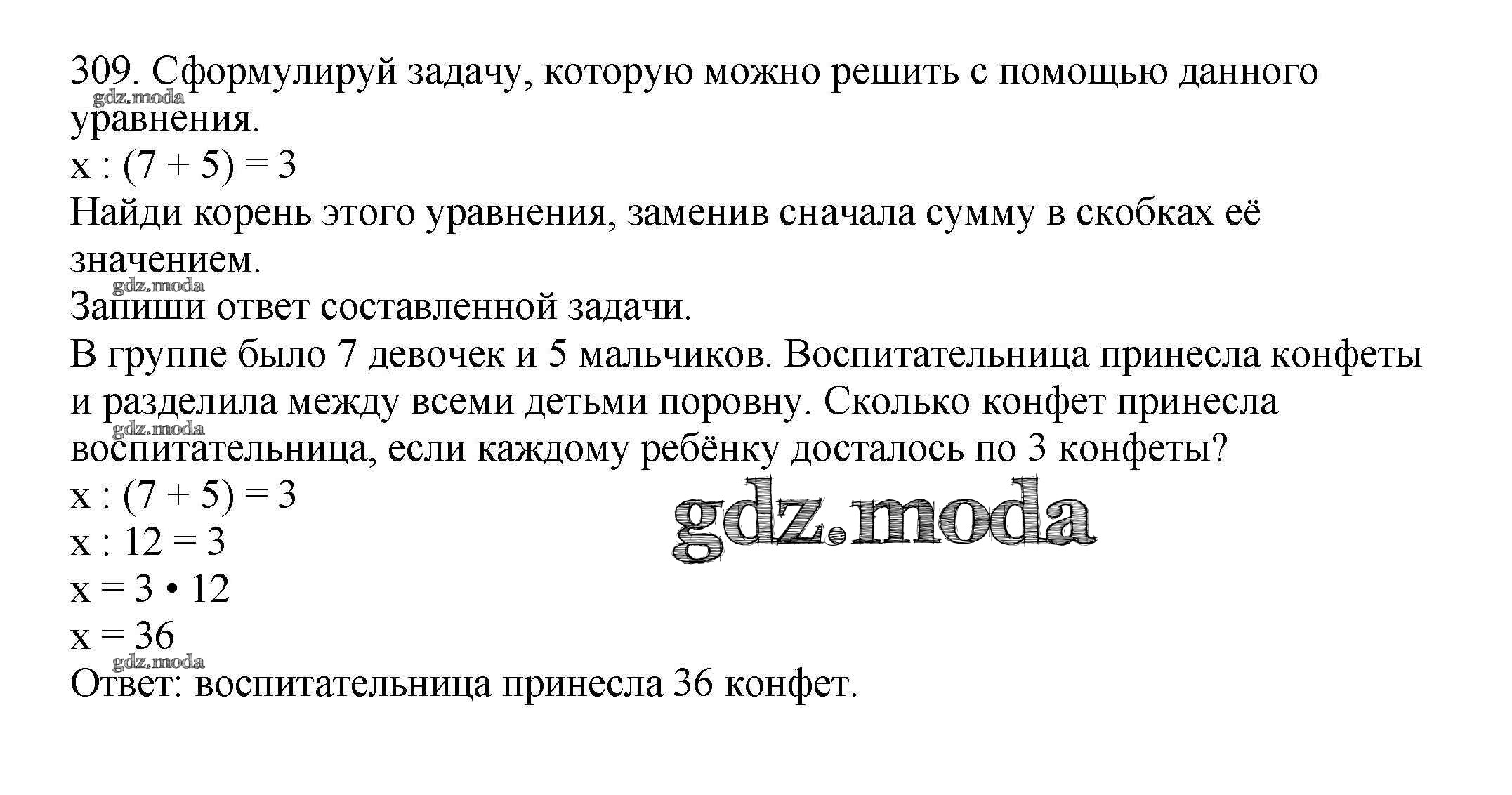 ОТВЕТ на задание № 309 Учебник по Математике 3 класс Чекин Перспективная начальная школа