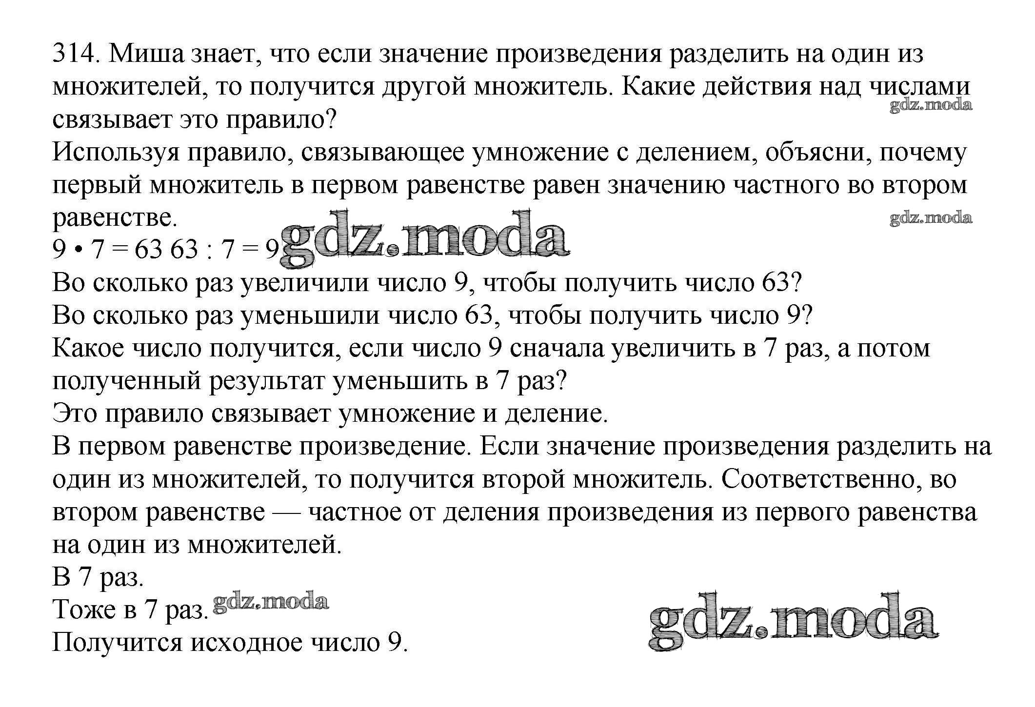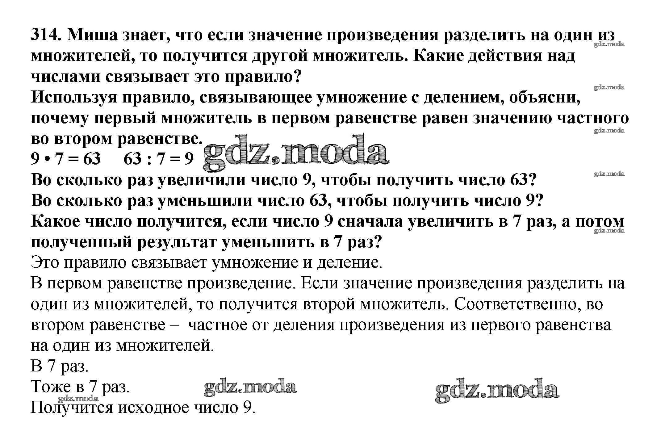ОТВЕТ на задание № 314 Учебник по Математике 3 класс Чекин Перспективная начальная школа