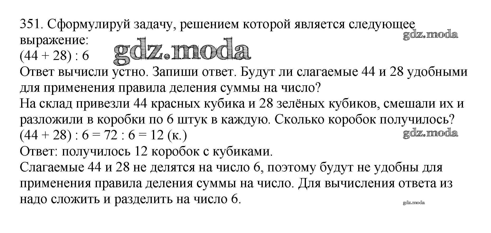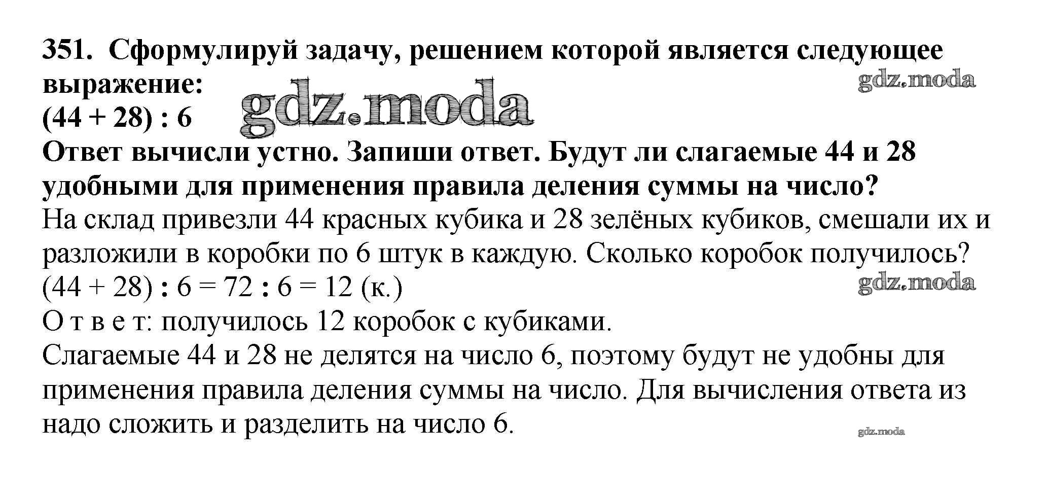 ОТВЕТ на задание № 351 Учебник по Математике 3 класс Чекин Перспективная начальная школа