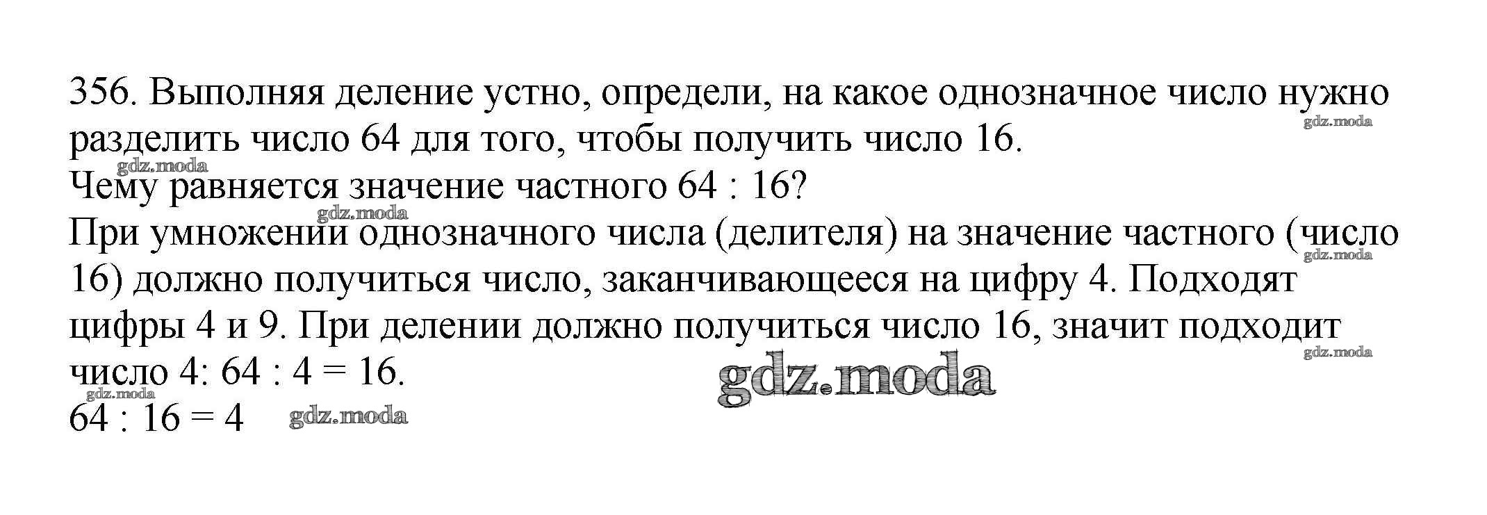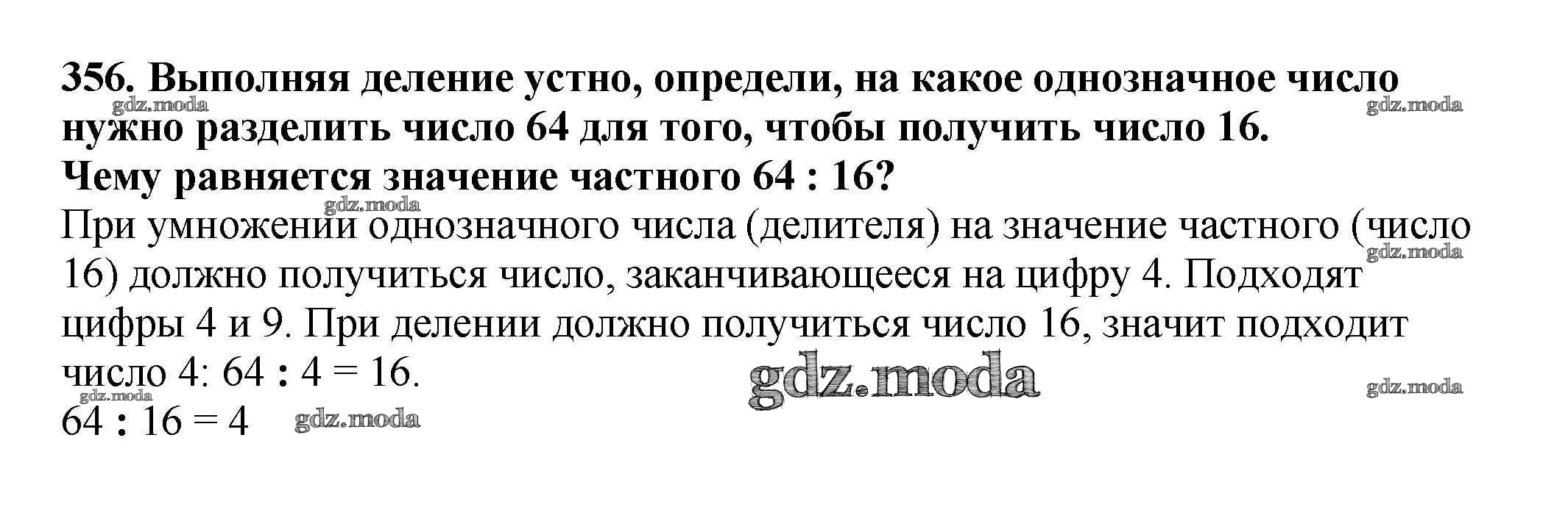 ОТВЕТ на задание № 356 Учебник по Математике 3 класс Чекин Перспективная начальная школа