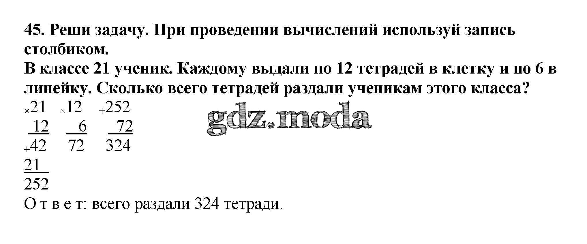 ГДЗ решение к заданию № 45 Математика 3 класс Чекин А.Л. Академкнига 2016 Часть 1, Часть 2 ФГОС бесплатно на гдз.мода!
