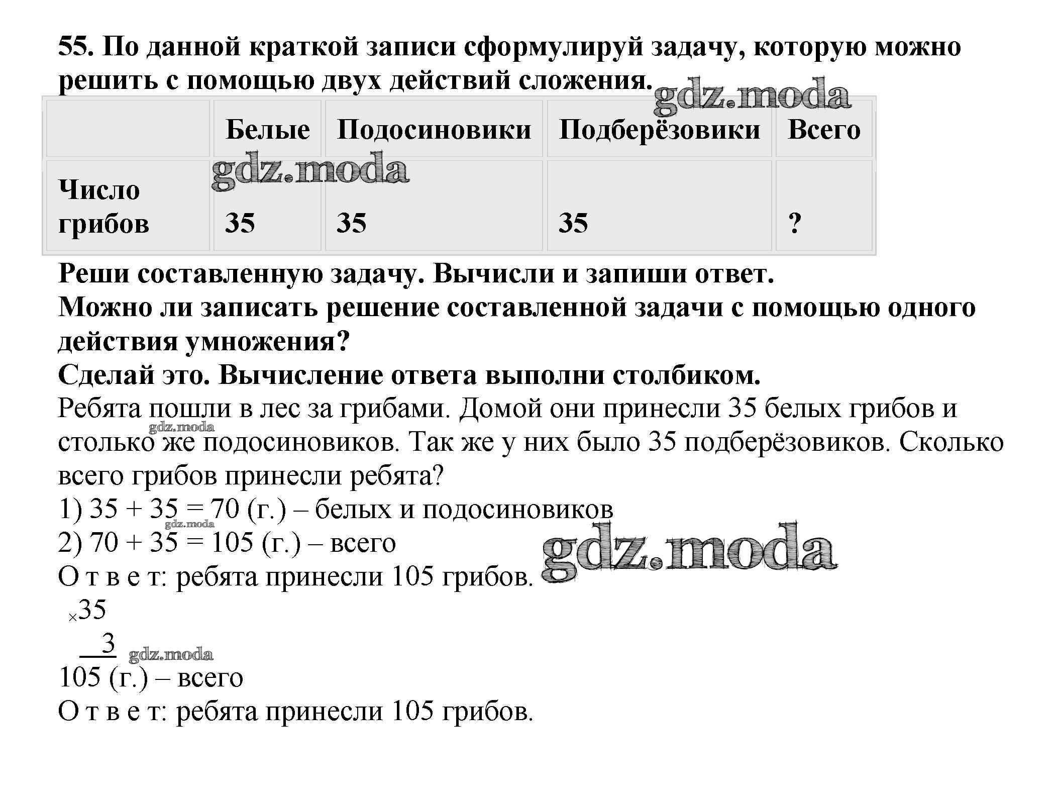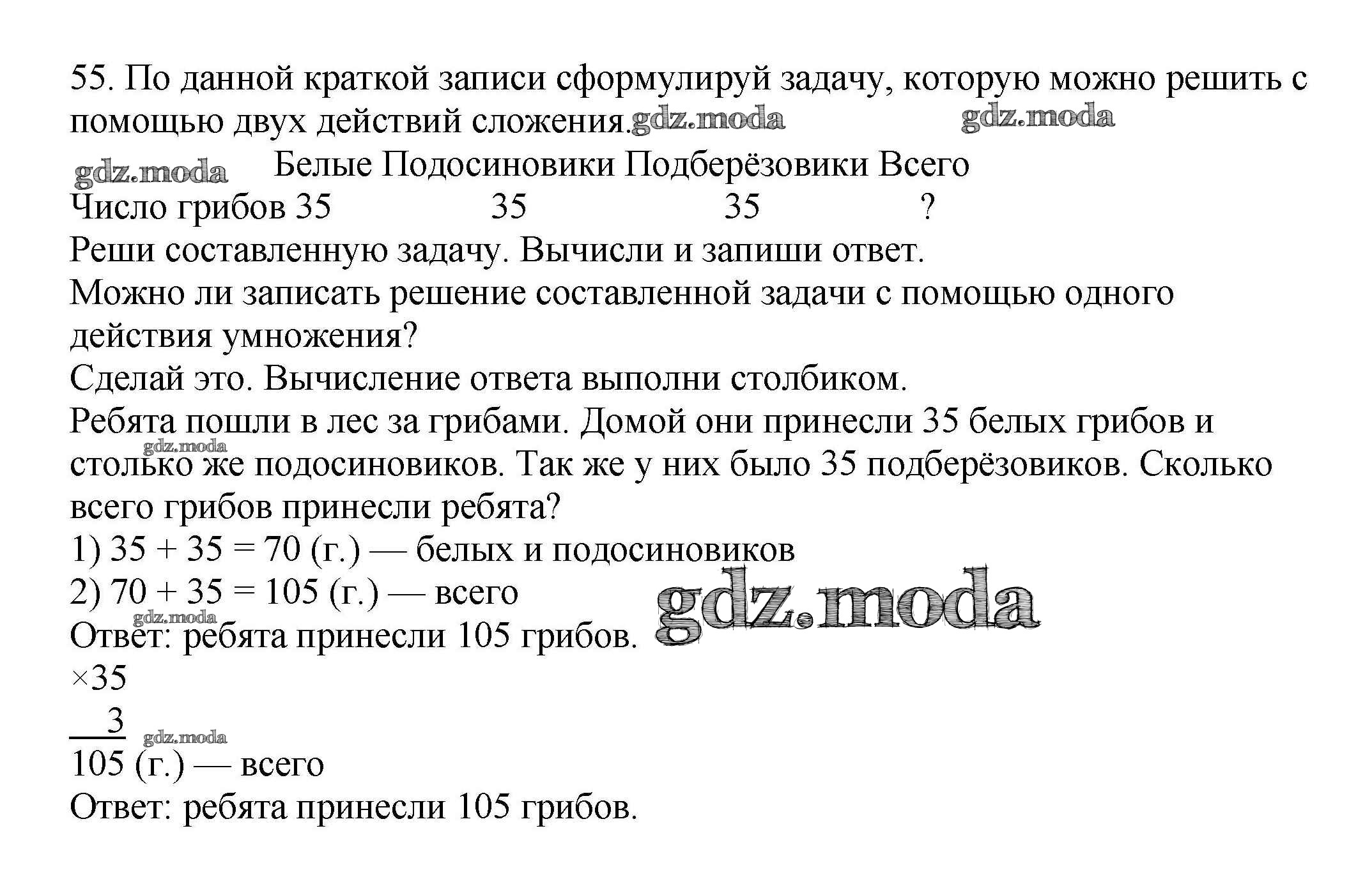 ГДЗ решение к заданию № 55 Математика 3 класс Чекин А.Л. Академкнига 2016 Часть 1, Часть 2 ФГОС бесплатно на гдз.мода!