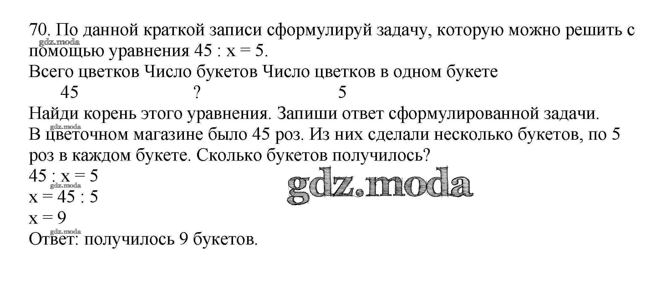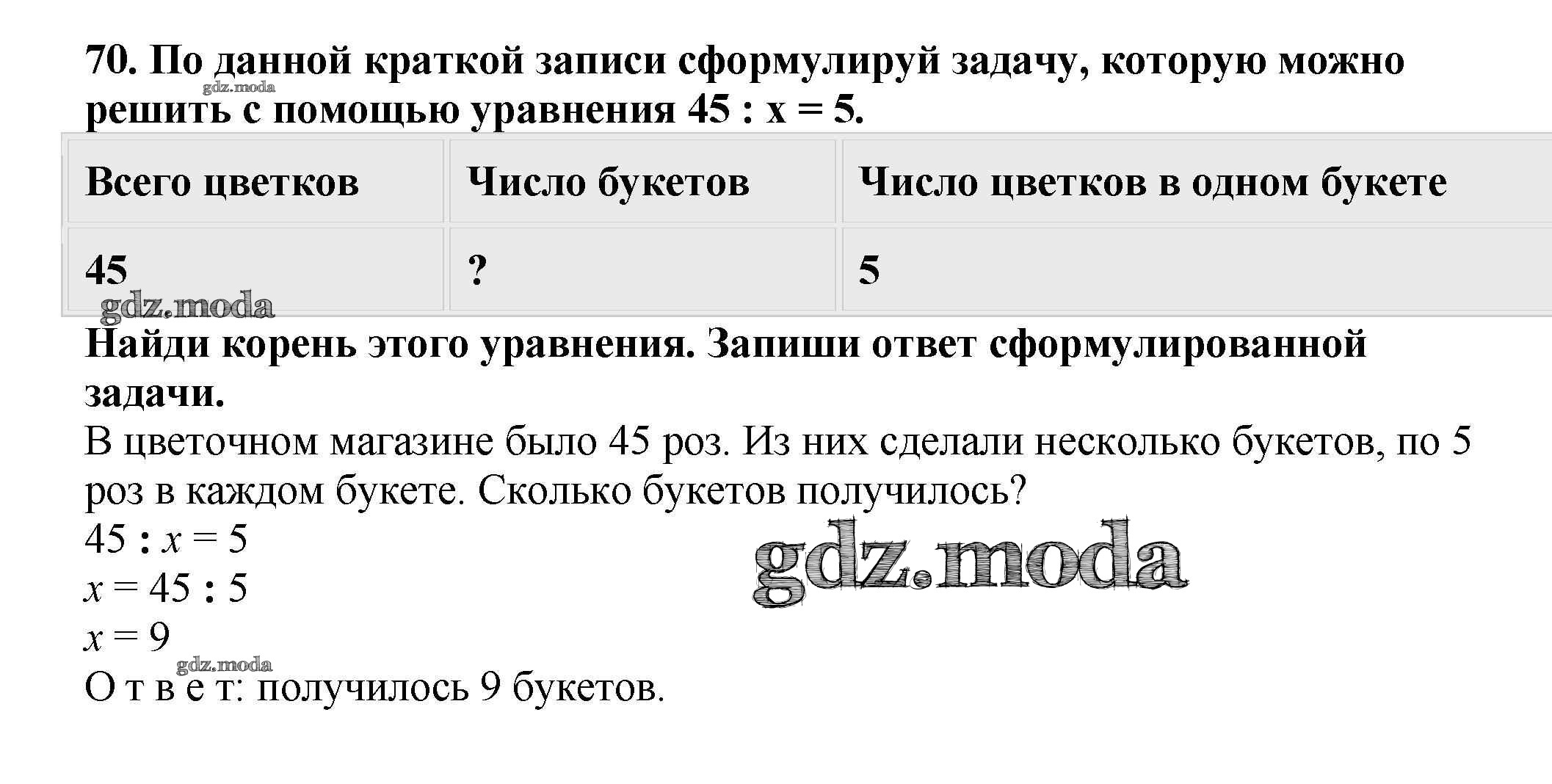 ОТВЕТ на задание № 70 Учебник по Математике 3 класс Чекин Перспективная начальная школа