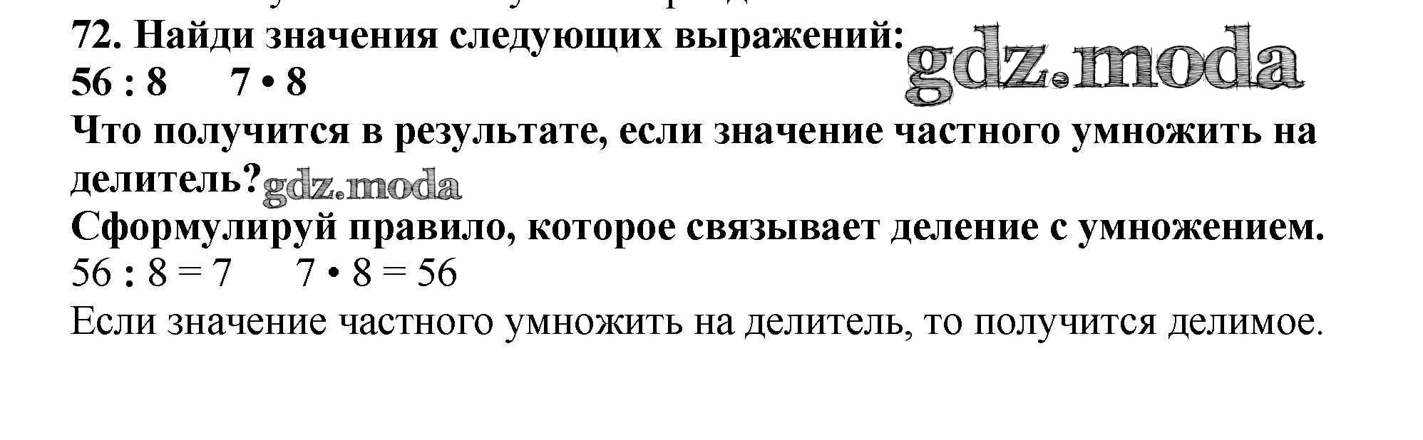 ГДЗ решение к заданию № 72 Математика 3 класс Чекин А.Л. Академкнига 2016 Часть 1, Часть 2 ФГОС бесплатно на гдз.мода!