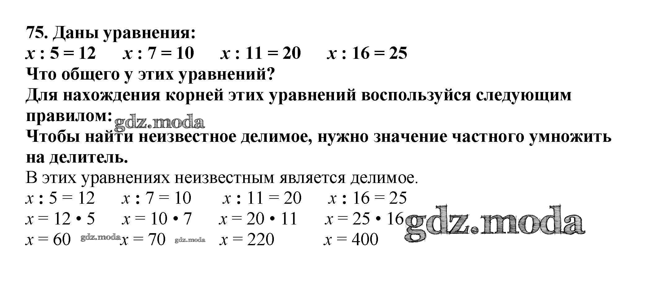 ГДЗ решение к заданию № 75 Математика 3 класс Чекин А.Л. Академкнига 2016 Часть 1, Часть 2 ФГОС бесплатно на гдз.мода!