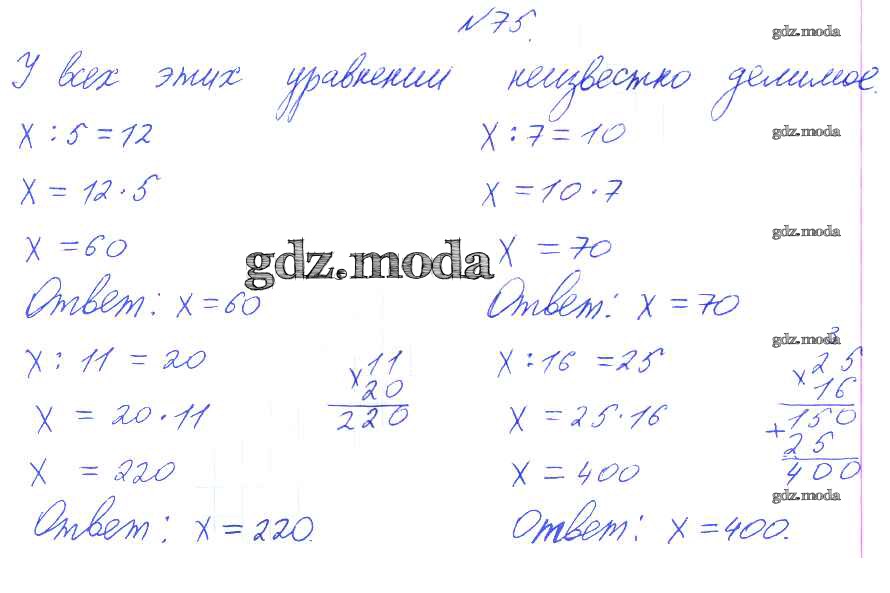 ОТВЕТ на задание № 75 Учебник по Математике 3 класс Чекин Перспективная начальная школа