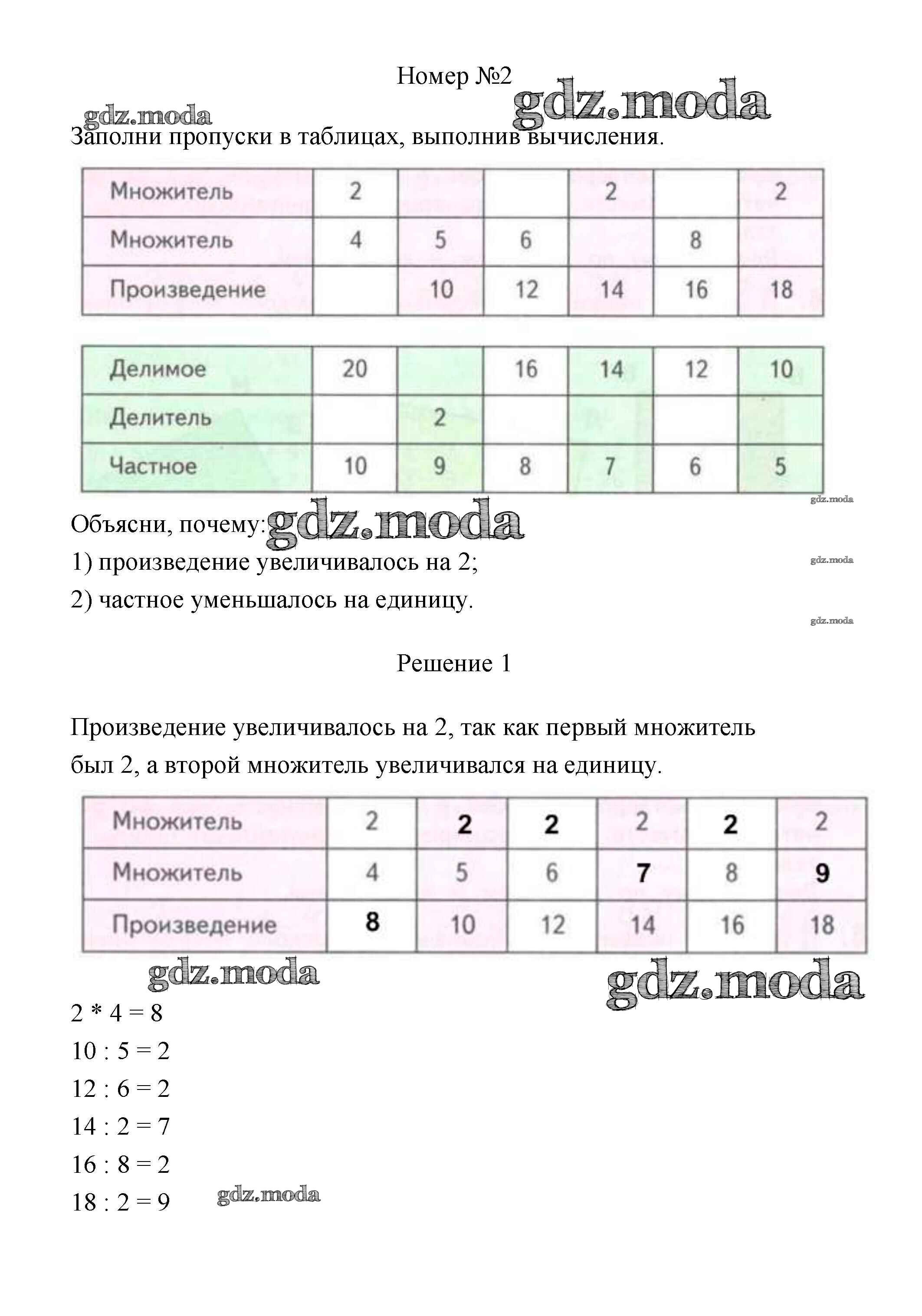 ГДЗ решение к заданию № 2 Математика 3 класс Дорофеев Г.В. Просвещение 2015 Часть 1, Часть 2 ФГОС бесплатно на гдз.мода!
