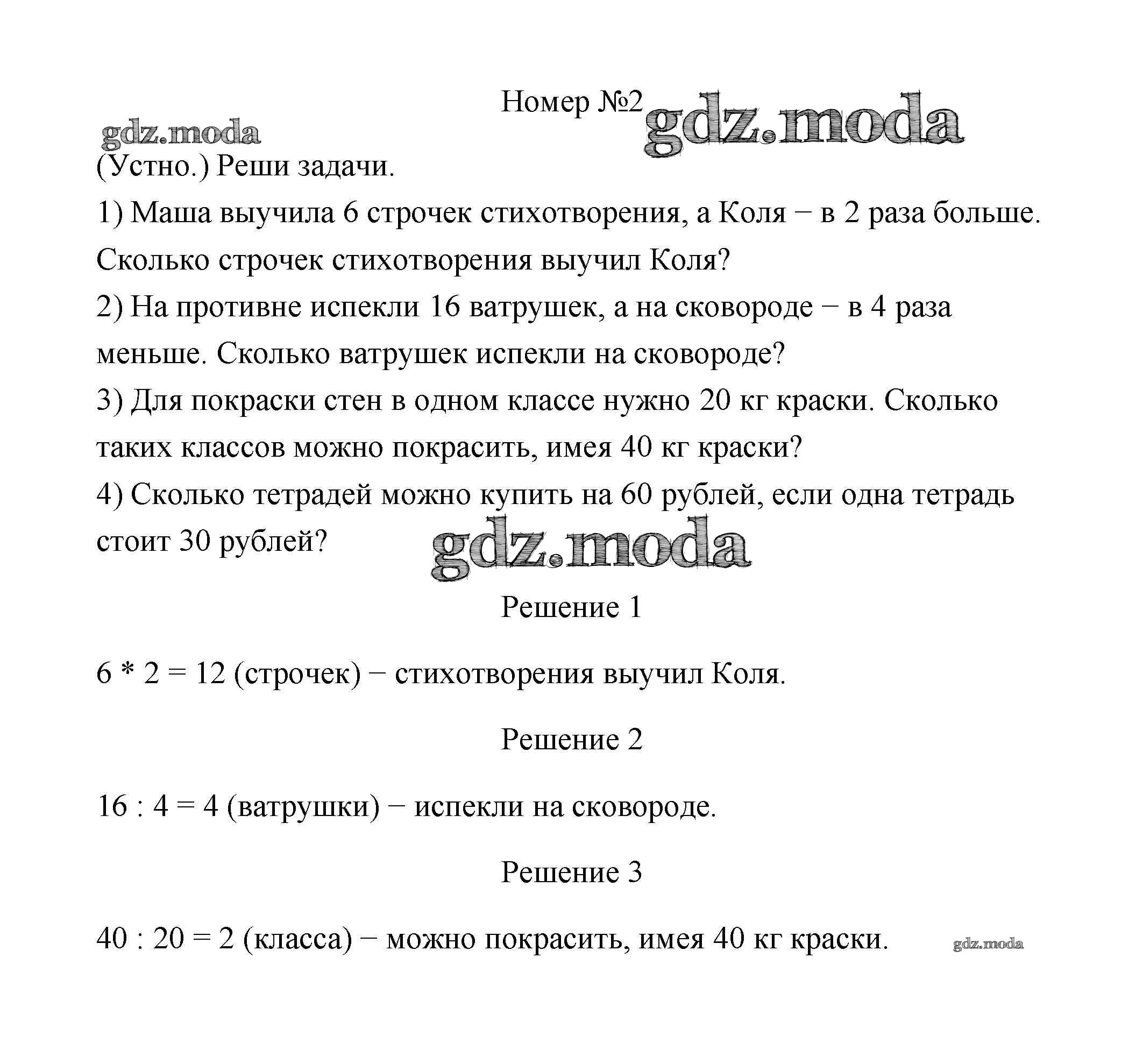 ГДЗ решение к заданию № 2 Математика 3 класс Дорофеев Г.В. Просвещение 2015 Часть 1, Часть 2 ФГОС бесплатно на гдз.мода!