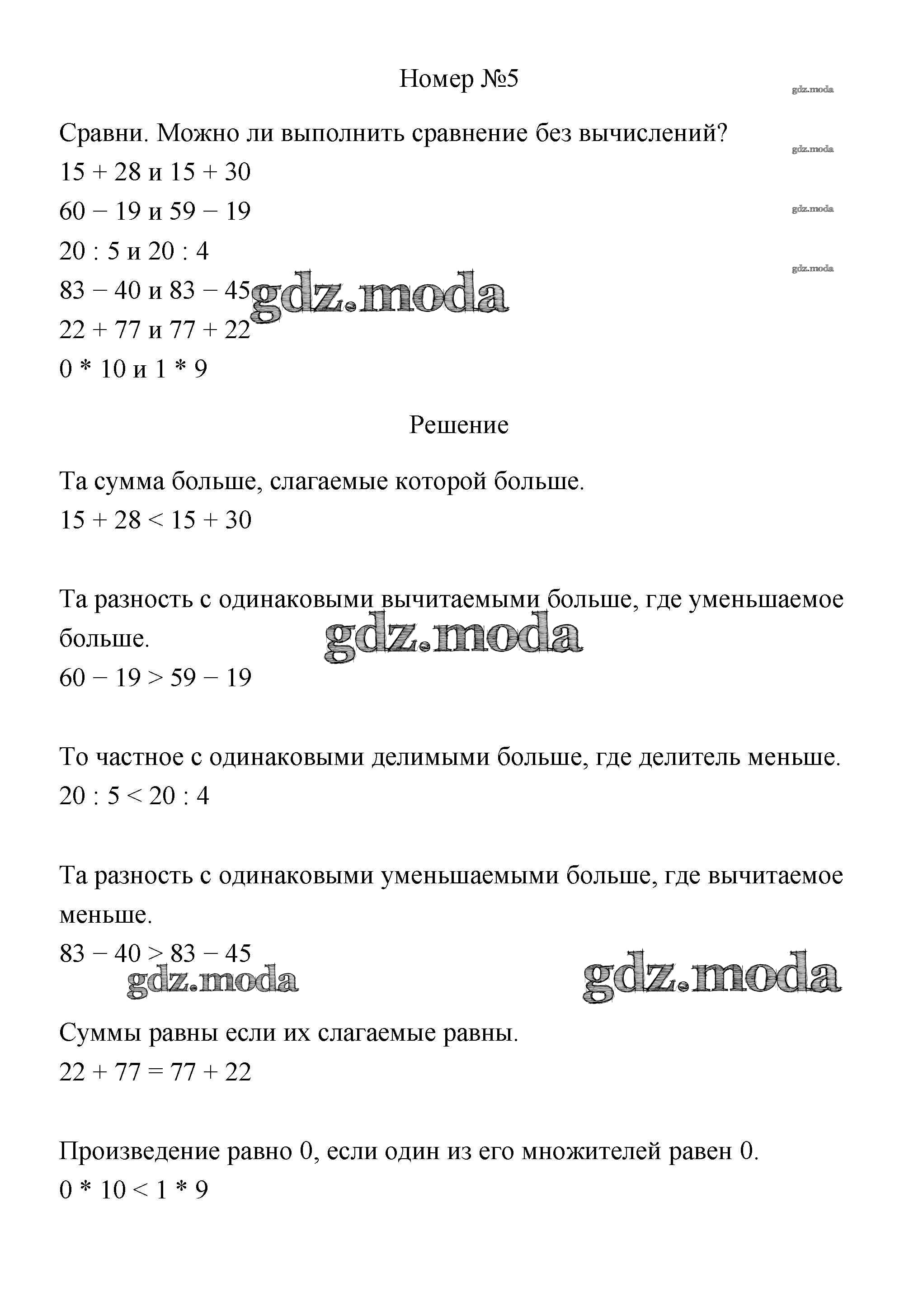 ГДЗ решение к заданию № 5 Математика 3 класс Дорофеев Г.В. Просвещение 2015 Часть 1, Часть 2 ФГОС бесплатно на гдз.мода!