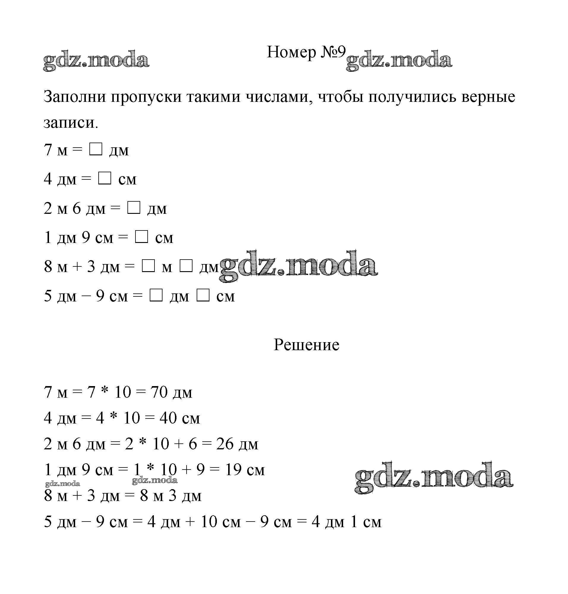 ГДЗ решение к заданию № 9 Математика 3 класс Дорофеев Г.В. Просвещение 2015 Часть 1, Часть 2 ФГОС бесплатно на гдз.мода!