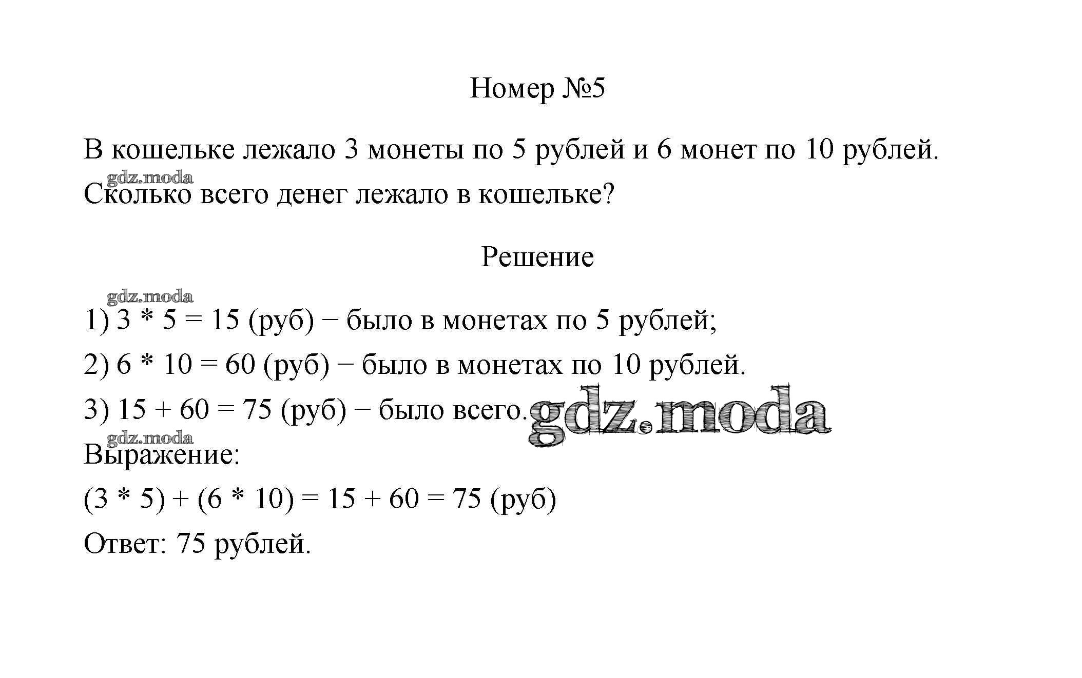 ГДЗ решение к заданию № 5 Математика 3 класс Дорофеев Г.В. Просвещение 2015 Часть 1, Часть 2 ФГОС бесплатно на гдз.мода!