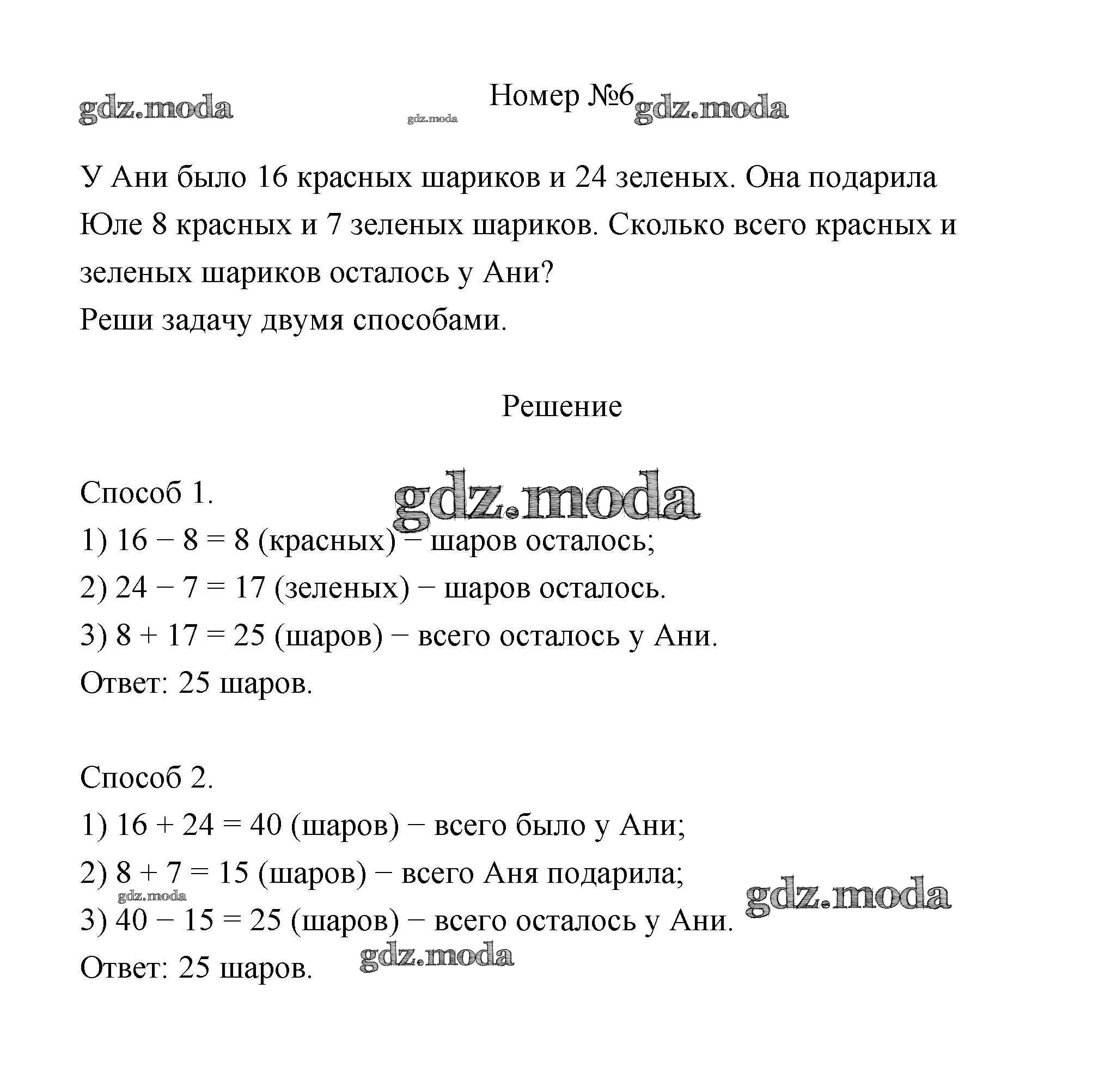 ГДЗ решение к заданию № 6 Математика 3 класс Дорофеев Г.В. Просвещение 2015 Часть 1, Часть 2 ФГОС бесплатно на гдз.мода!