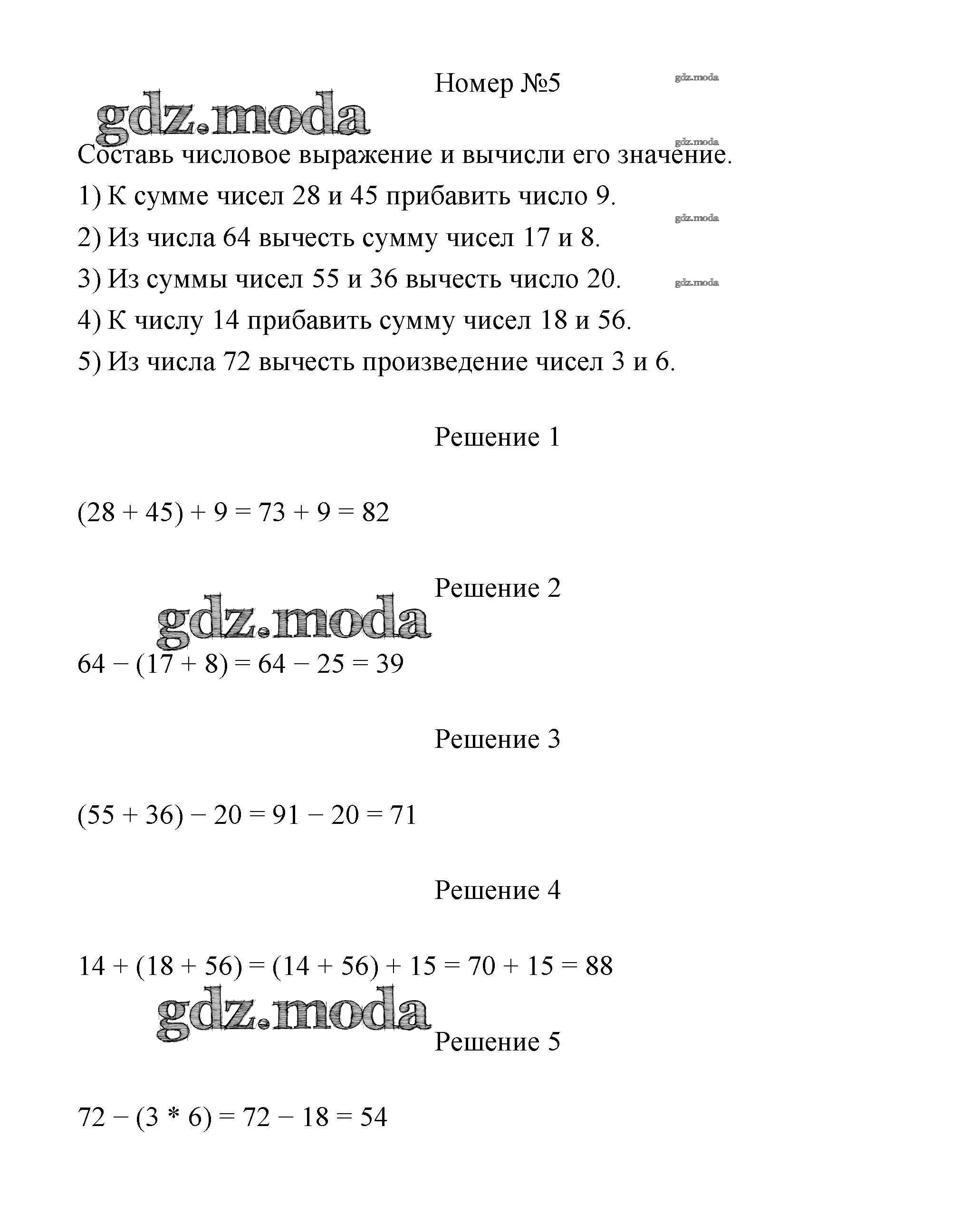 ГДЗ решение к заданию № 5 Математика 3 класс Дорофеев Г.В. Просвещение 2015 Часть 1, Часть 2 ФГОС бесплатно на гдз.мода!