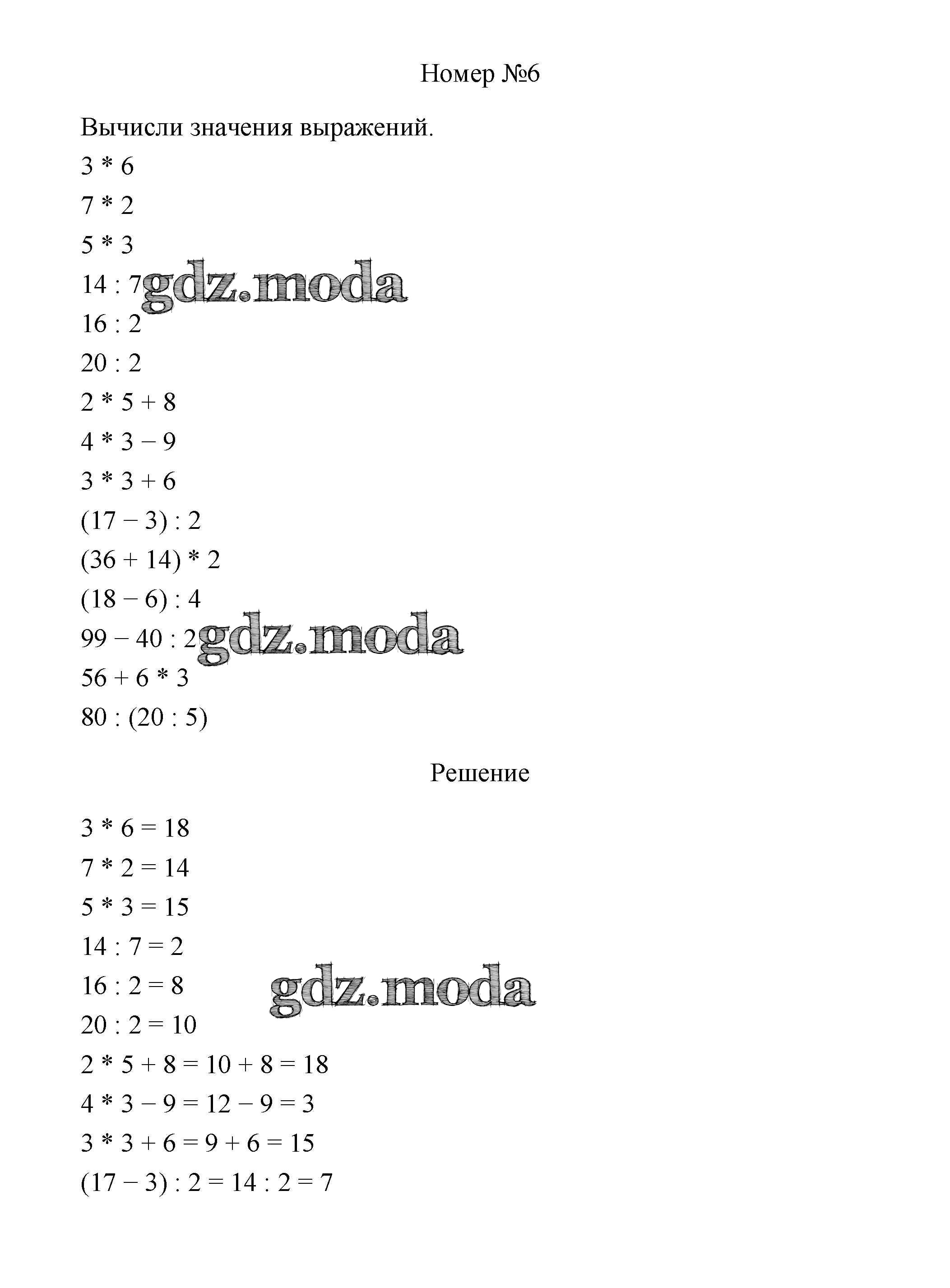 ГДЗ решение к заданию № 6 Математика 3 класс Дорофеев Г.В. Просвещение 2015 Часть 1, Часть 2 ФГОС бесплатно на гдз.мода!
