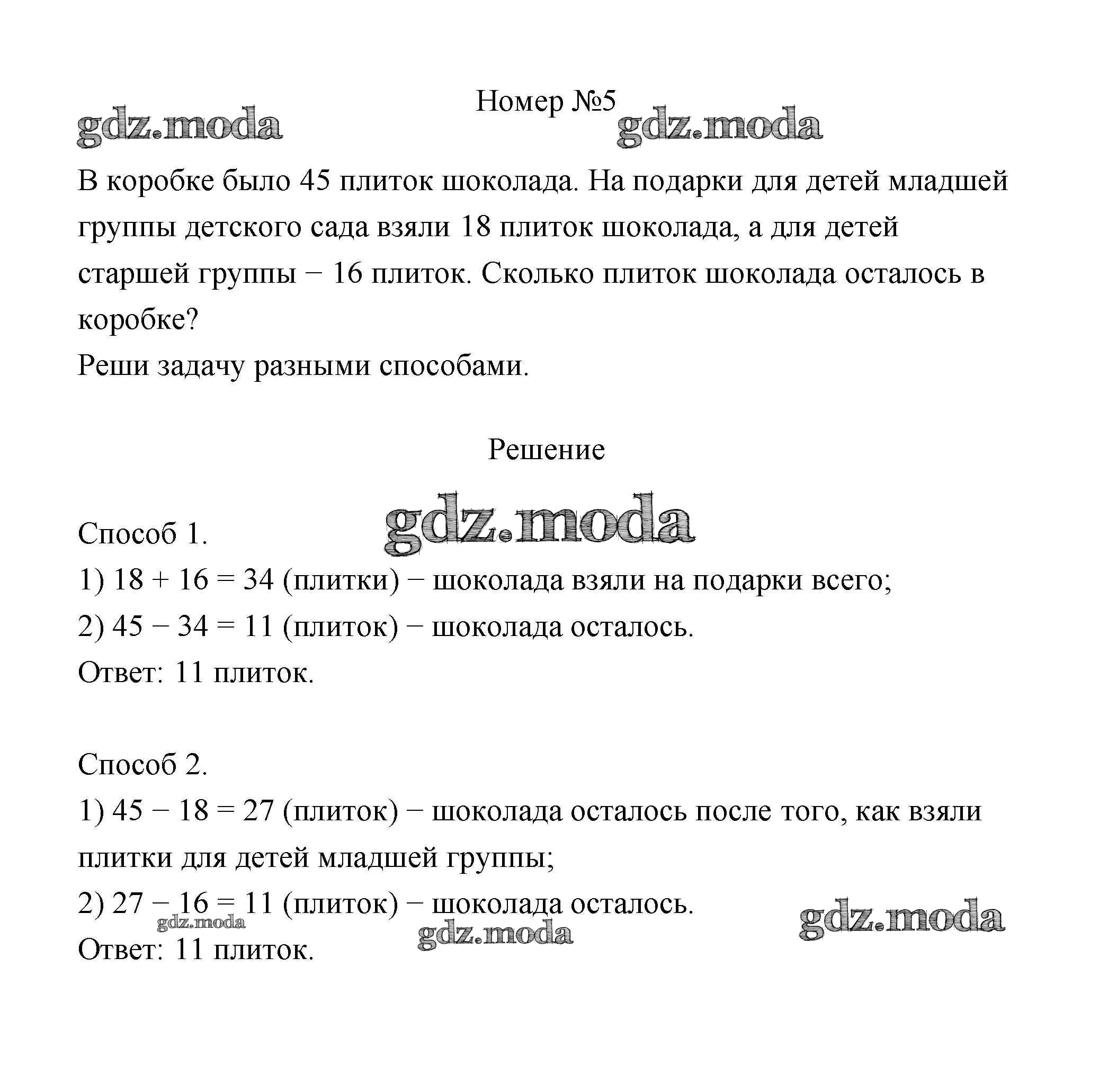 ГДЗ решение к заданию № 5 Математика 3 класс Дорофеев Г.В. Просвещение 2015 Часть 1, Часть 2 ФГОС бесплатно на гдз.мода!
