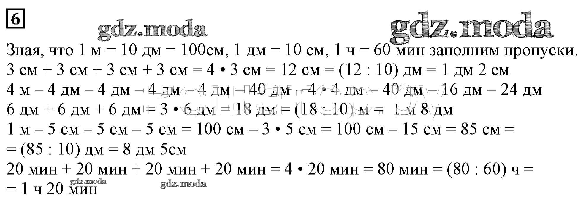 ГДЗ решение к заданию № 6 Математика 3 класс Дорофеев Г.В. Просвещение 2015 Часть 1, Часть 2 ФГОС бесплатно на гдз.мода!