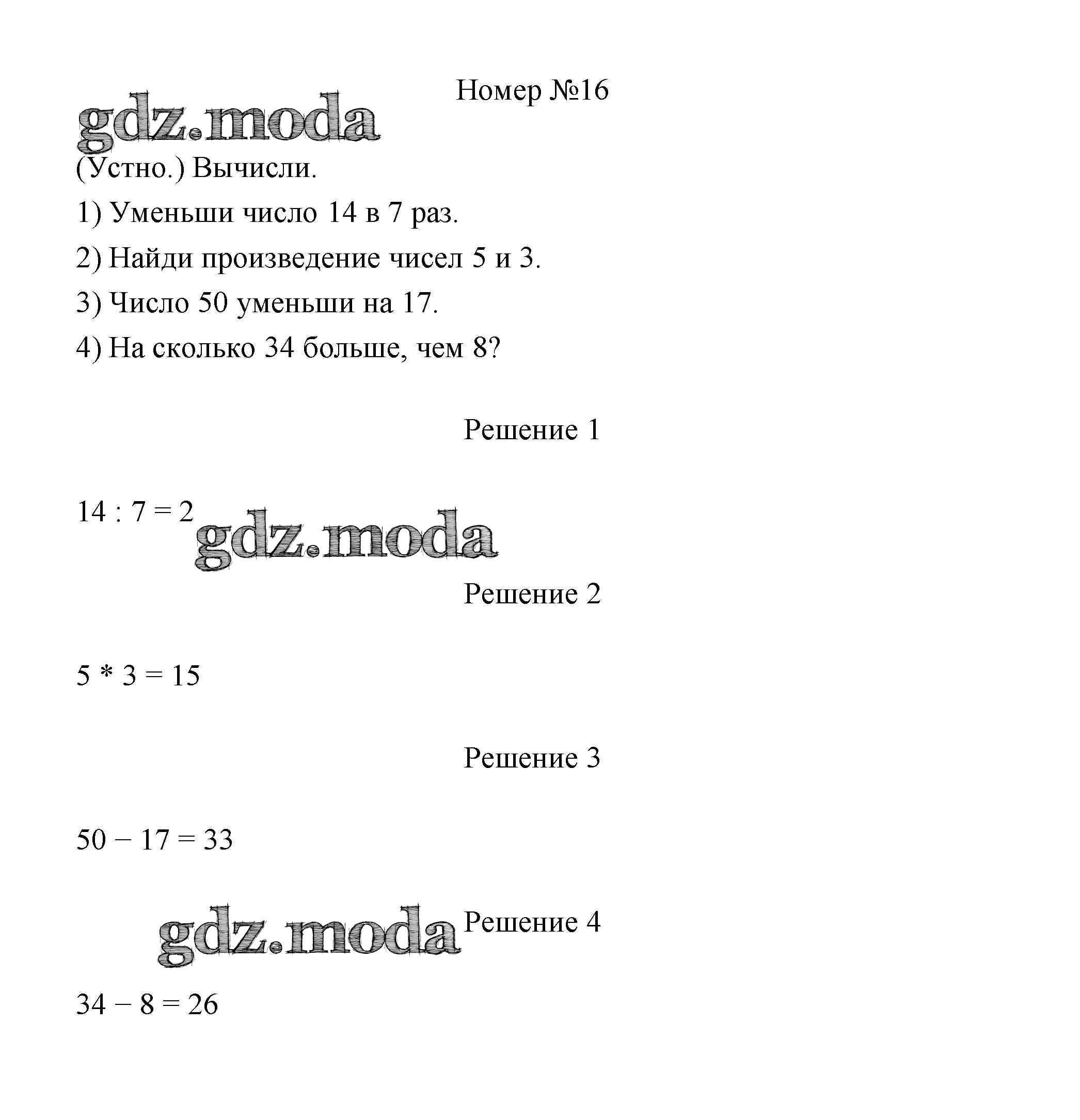 ГДЗ решение к заданию № 16 Математика 3 класс Дорофеев Г.В. Просвещение 2015 Часть 1, Часть 2 ФГОС бесплатно на гдз.мода!