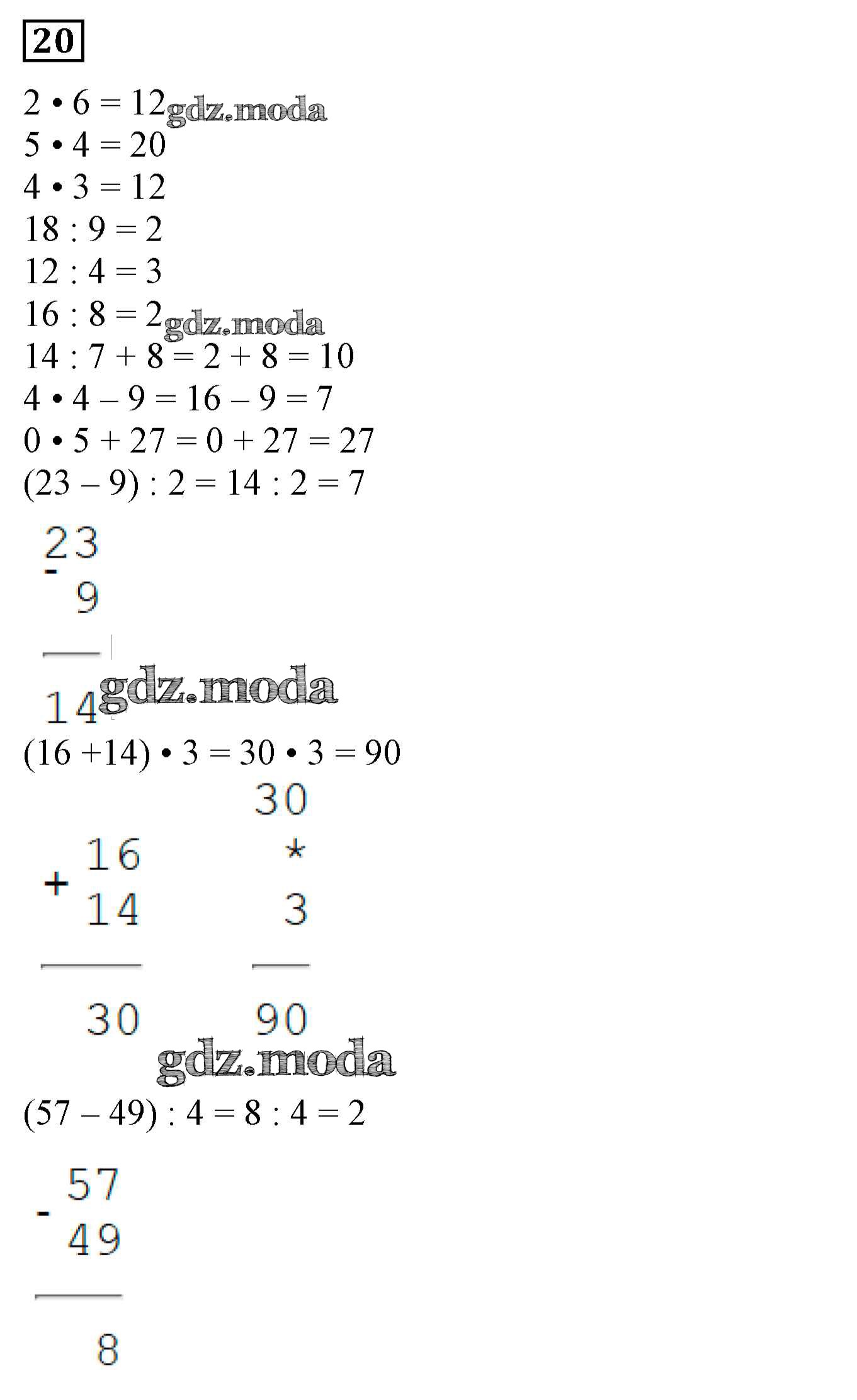 ГДЗ решение к заданию № 20 Математика 3 класс Дорофеев Г.В. Просвещение 2015 Часть 1, Часть 2 ФГОС бесплатно на гдз.мода!