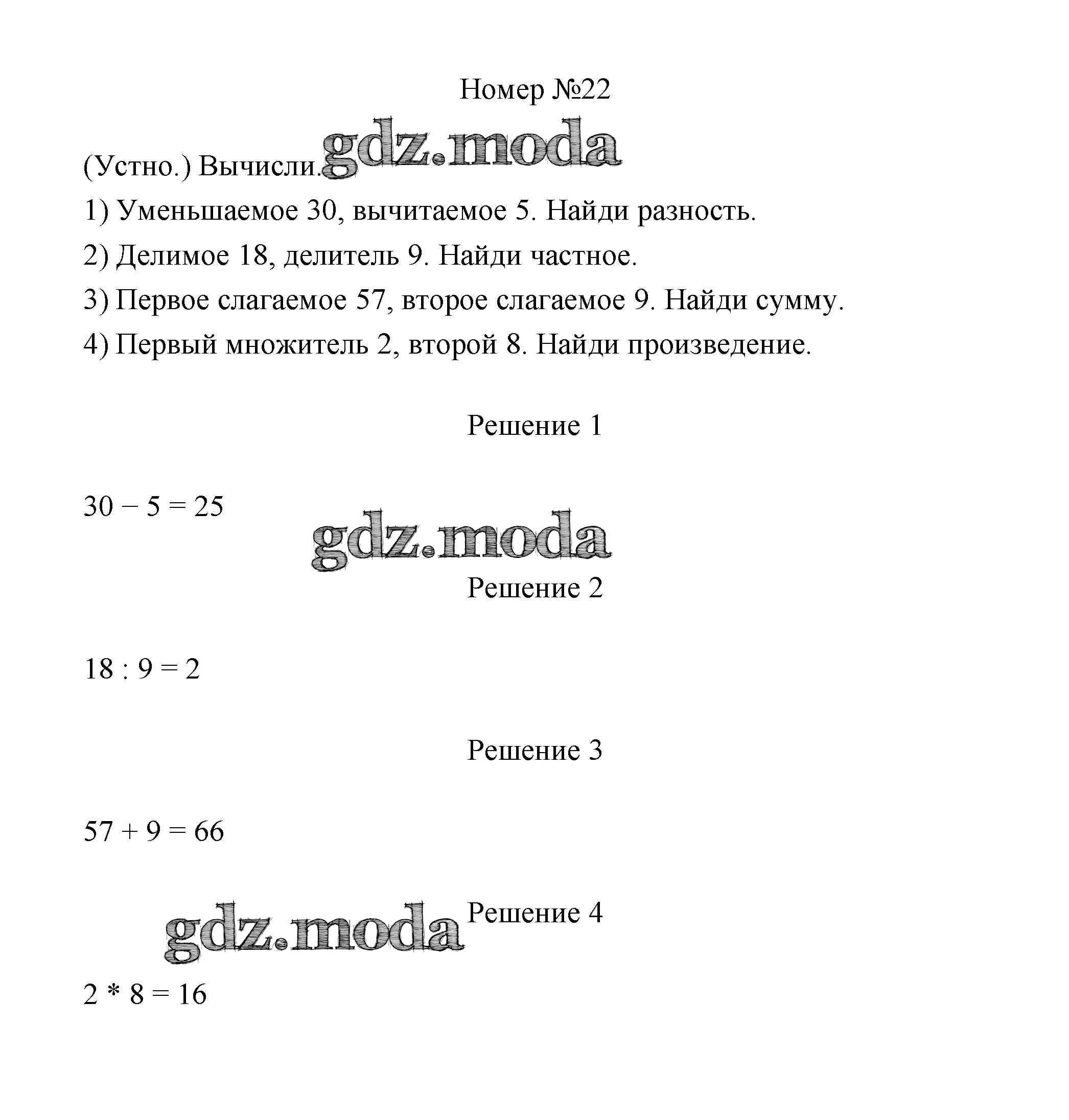 ОТВЕТ на задание № 22 Учебник по Математике 3 класс Дорофеев