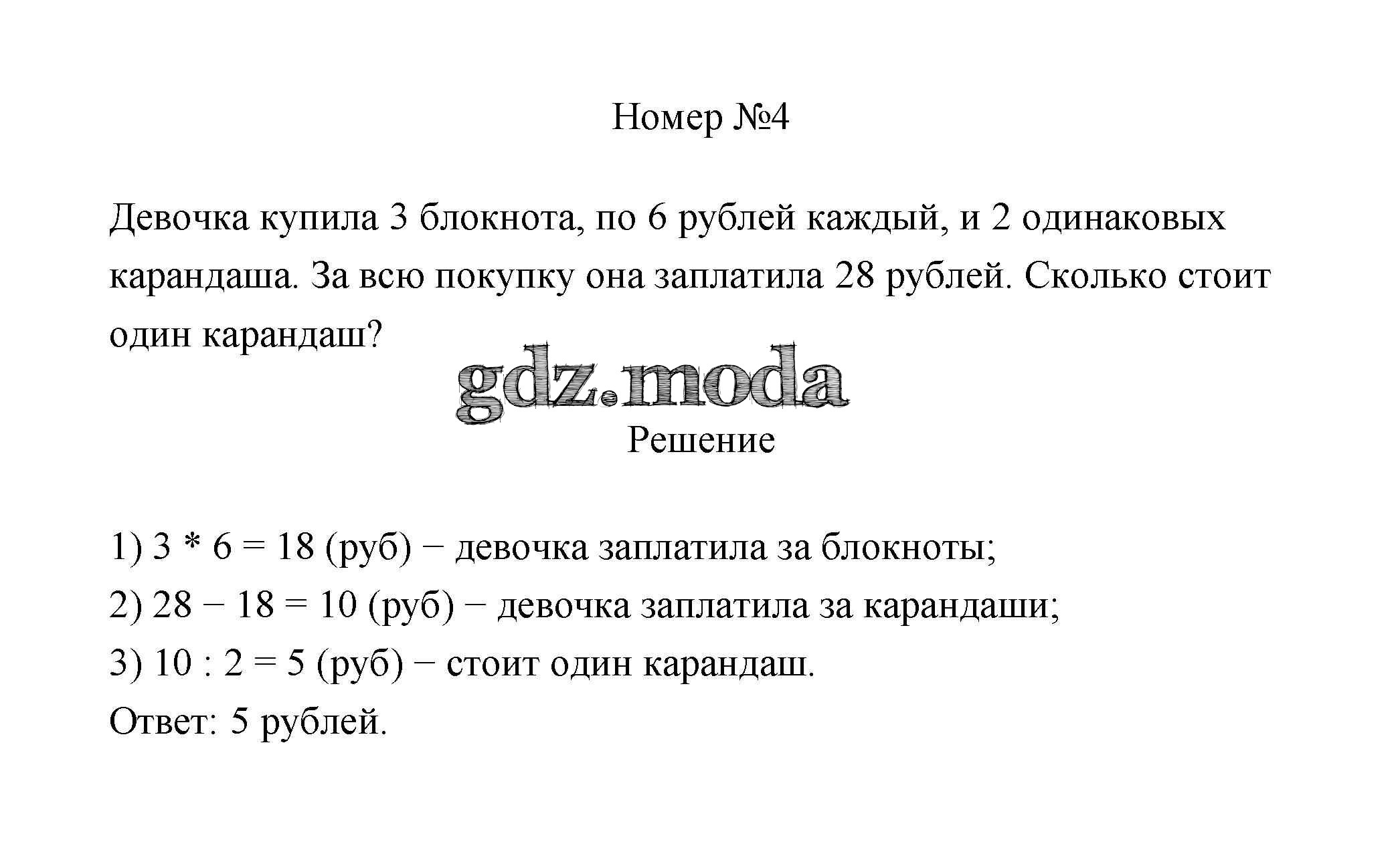 ГДЗ решение к заданию № 4 Математика 3 класс Дорофеев Г.В. Просвещение 2015 Часть 1, Часть 2 ФГОС бесплатно на гдз.мода!